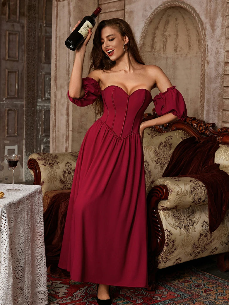 Victorian Off Shoulder Corset Bodice Maxi Dress