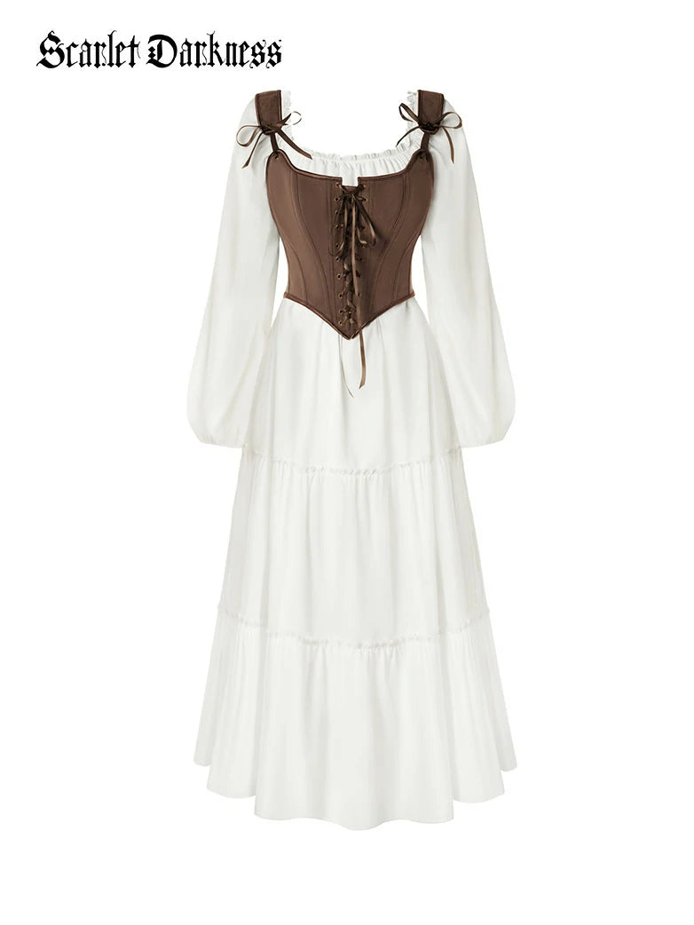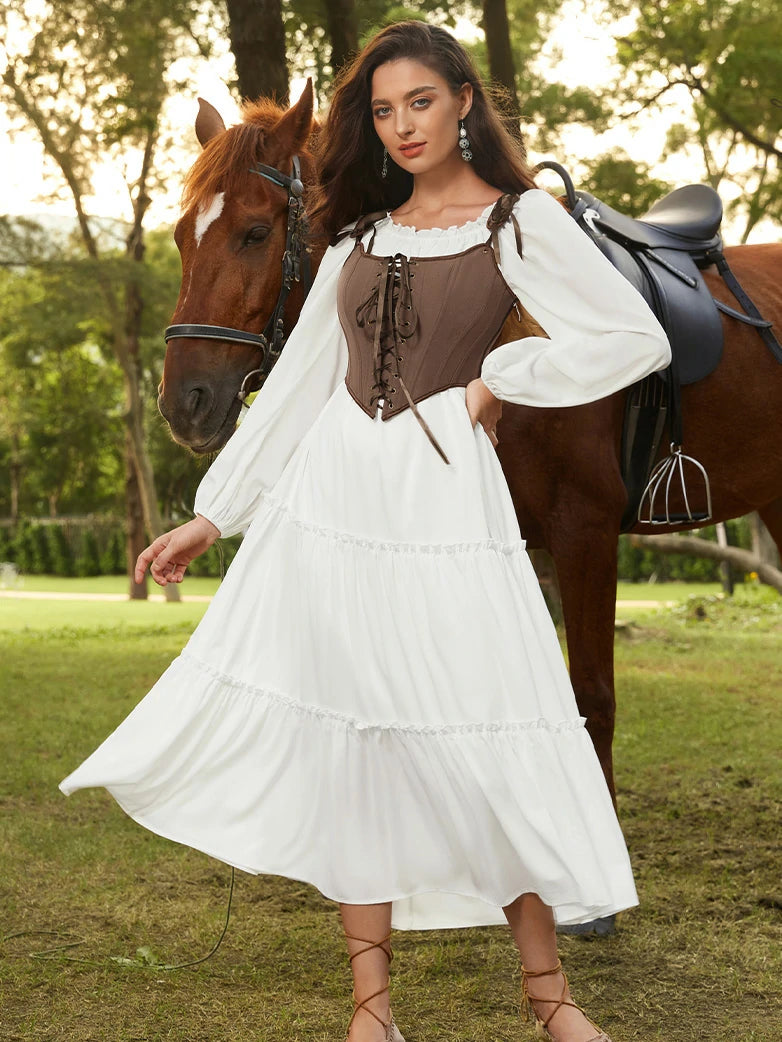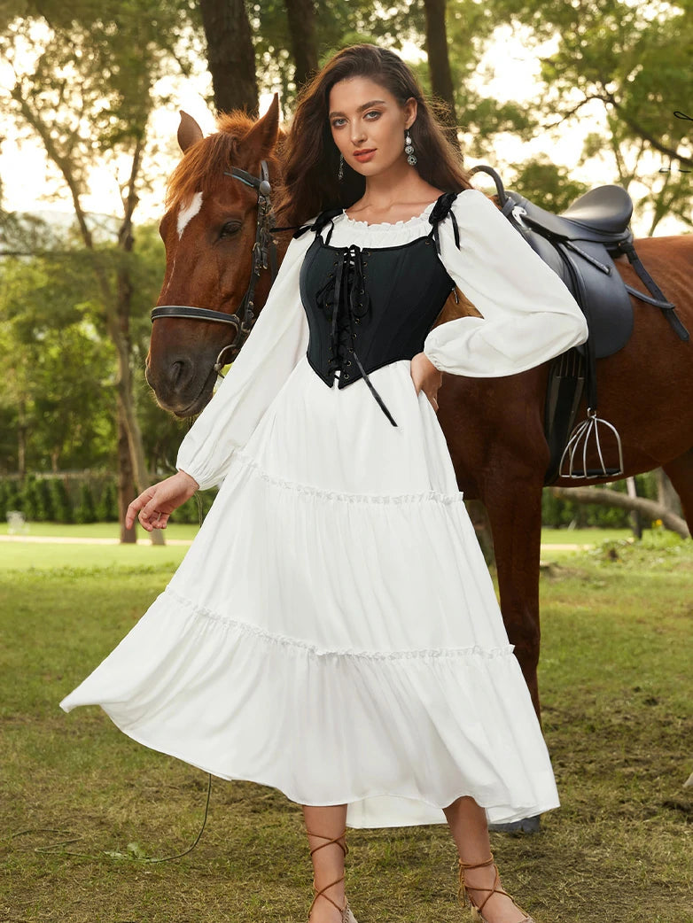 Renaissance Costume Set Maxi Dress+Bones Corset