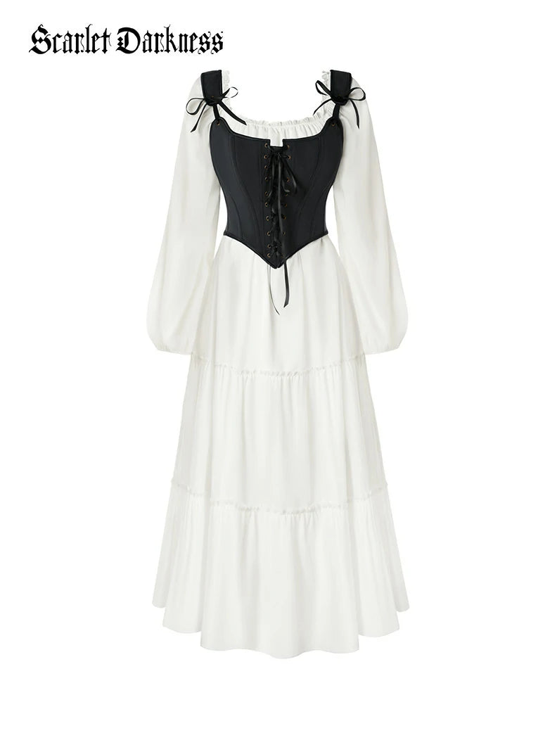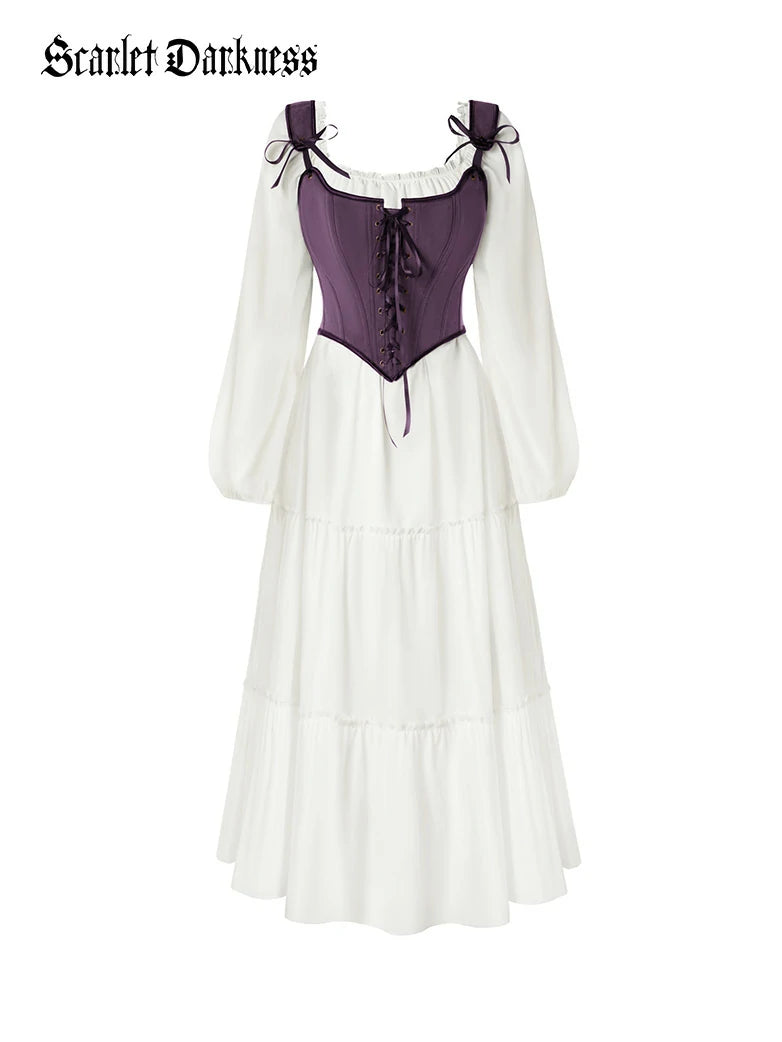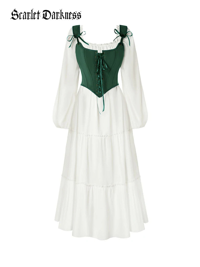 Scarlet Darkness Women Renaissance 2pcs Set Costume Maxi Dress+14 Bones Corset