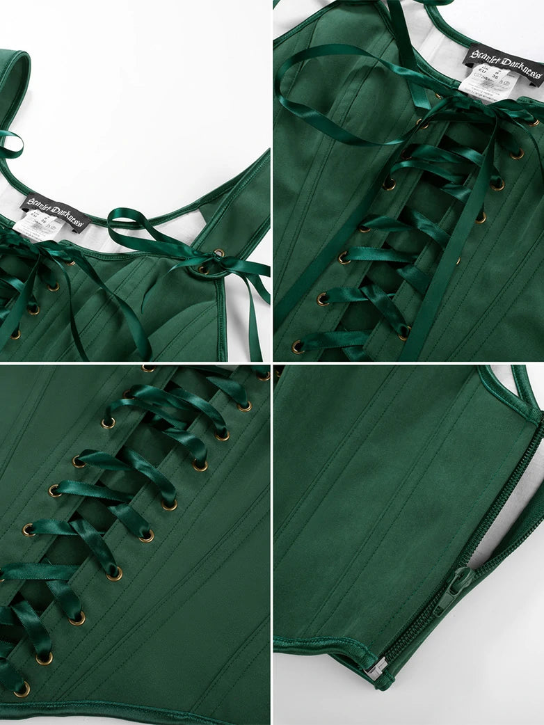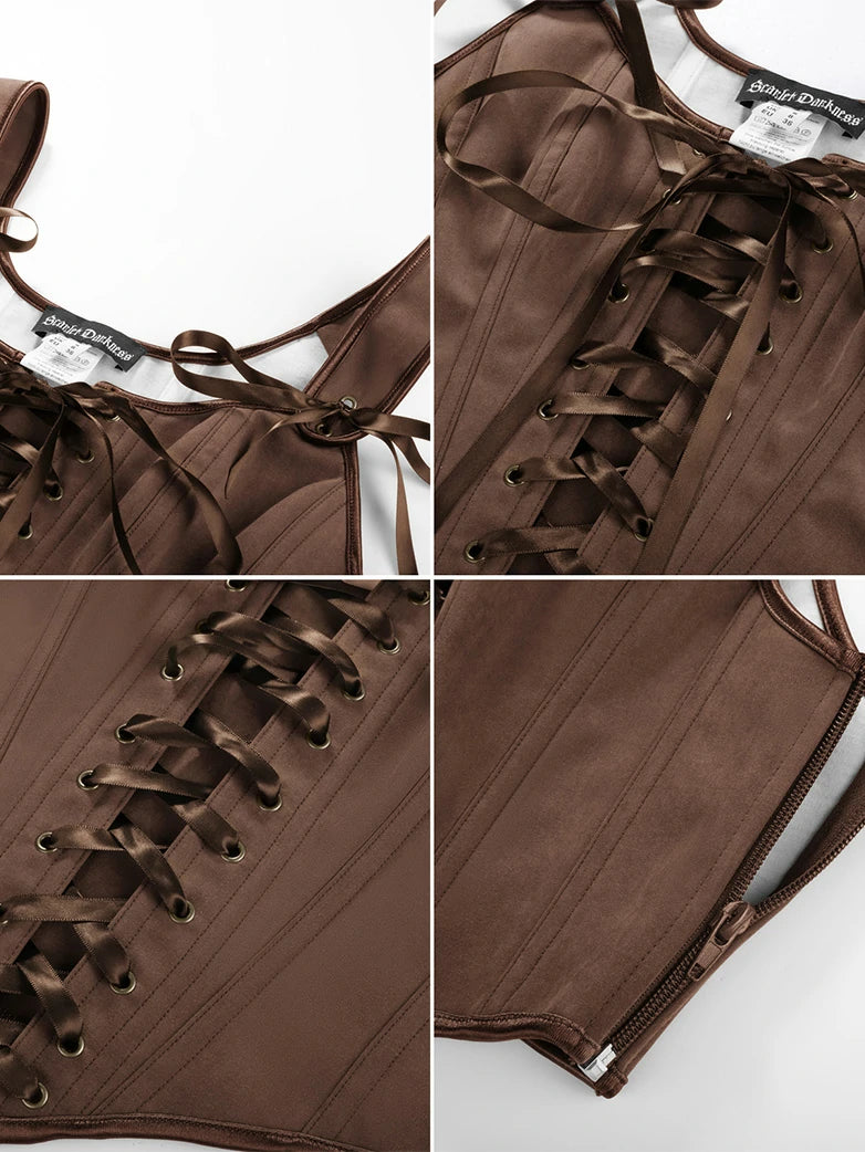 4) Tie-shoulder lace-up front corset with 14pcs plastic bones, shape your body