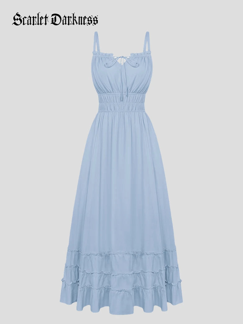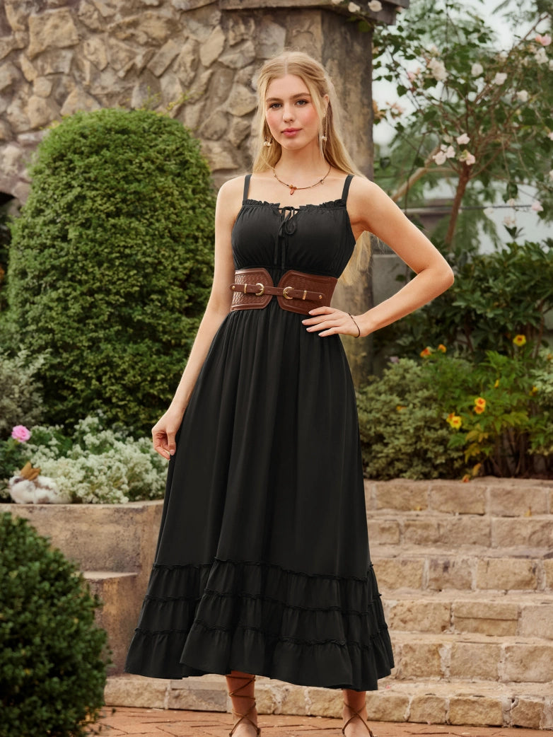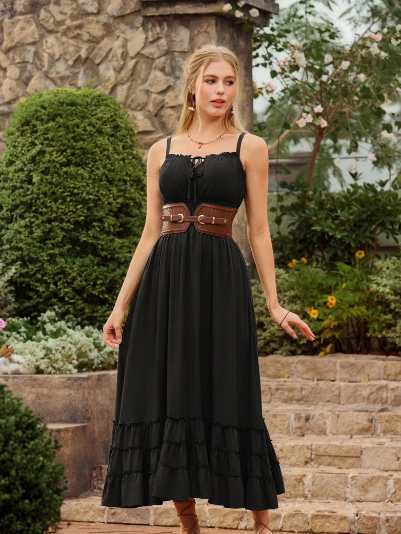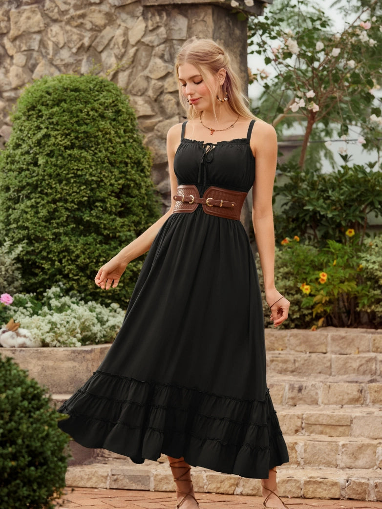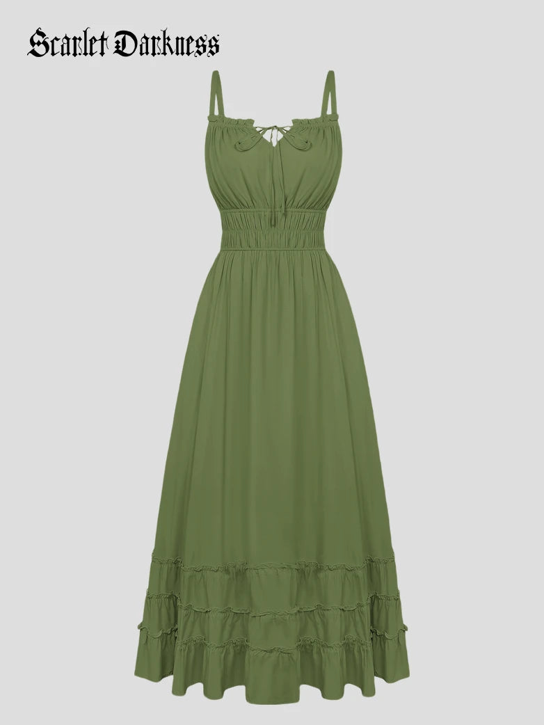 Scarlet Darkness Women Renaissance Boho Chic Pockets Maxi Dress
