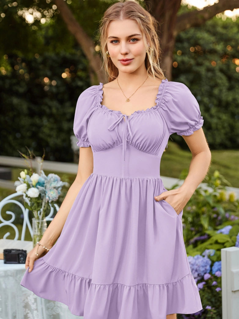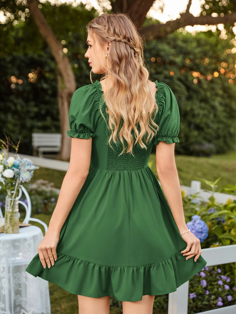 2) Short sleeves with ruffled openings
