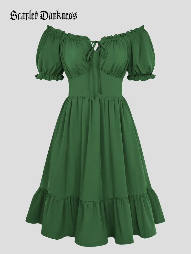 Scarlet Darkness Women Renaissance Off Shoulder Pockets Dress