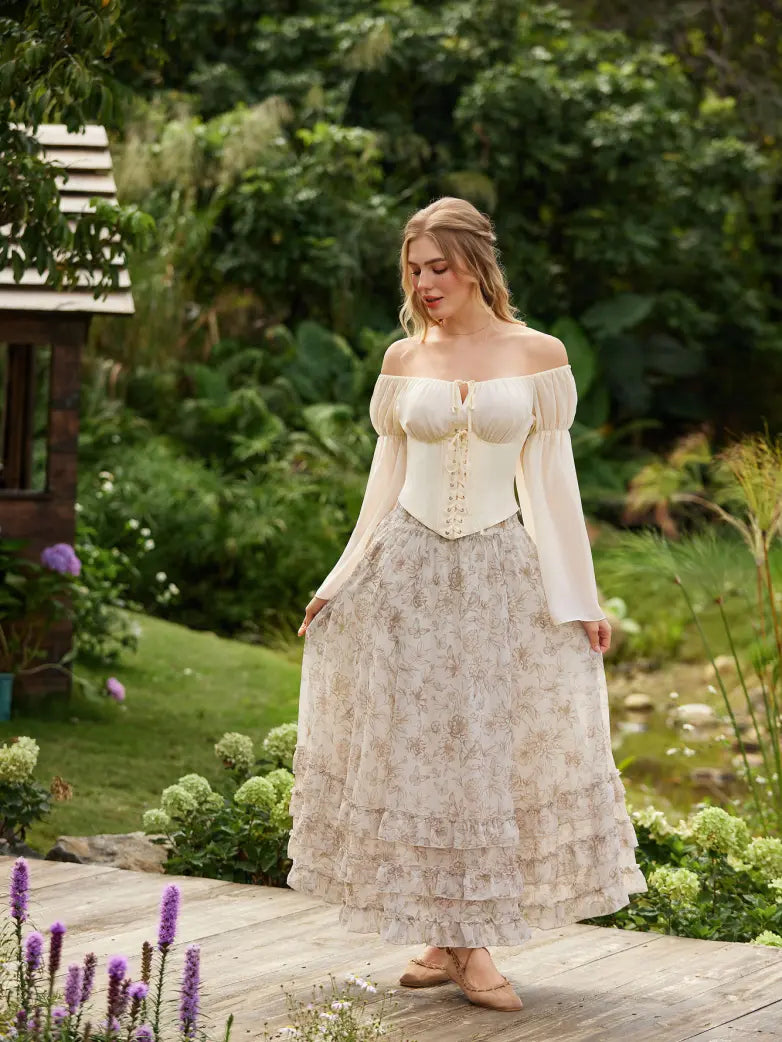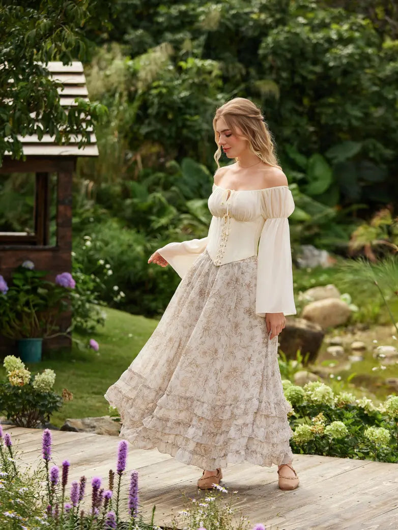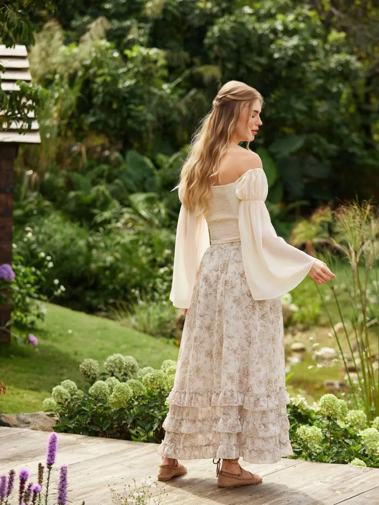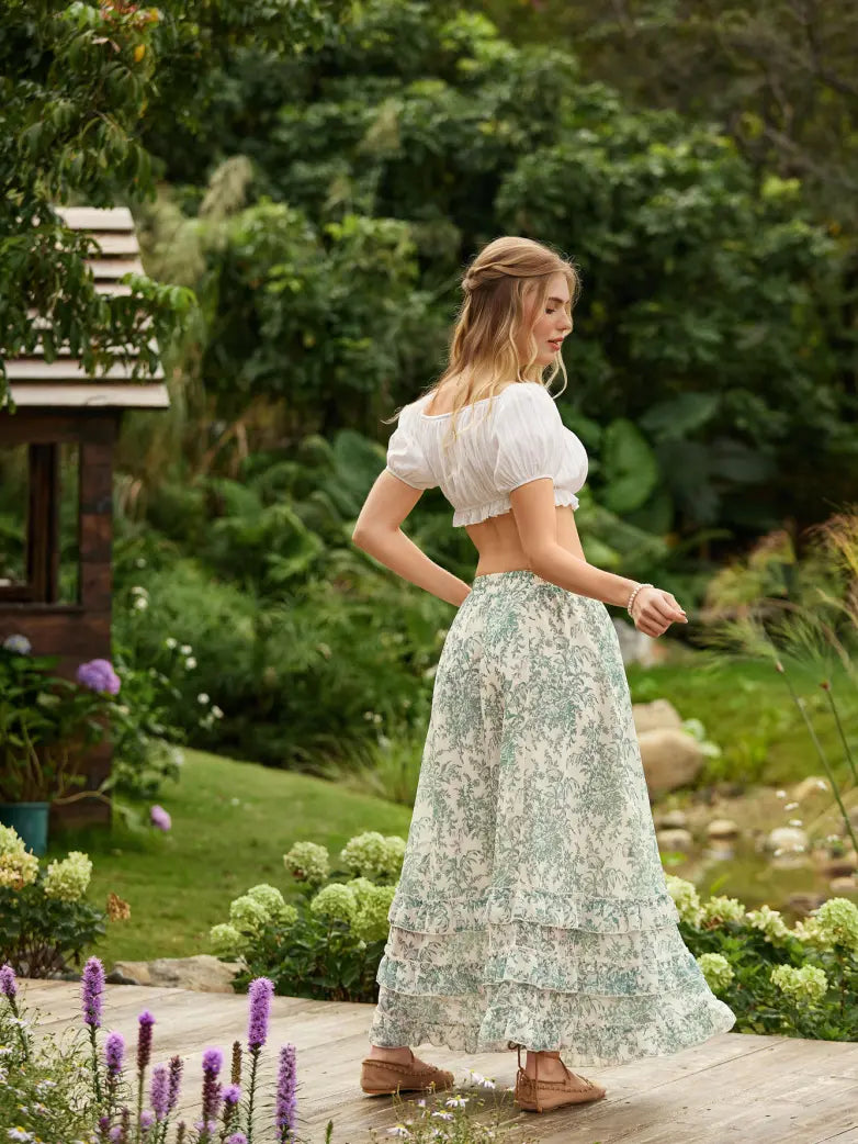 Step back in time with this whimsical Renaissance chiffon maxi skirt that's equal parts elegance and fun! The lightweight chiffon fabric drapes gracefully, creating a mesmerizing swing effect as you move.
