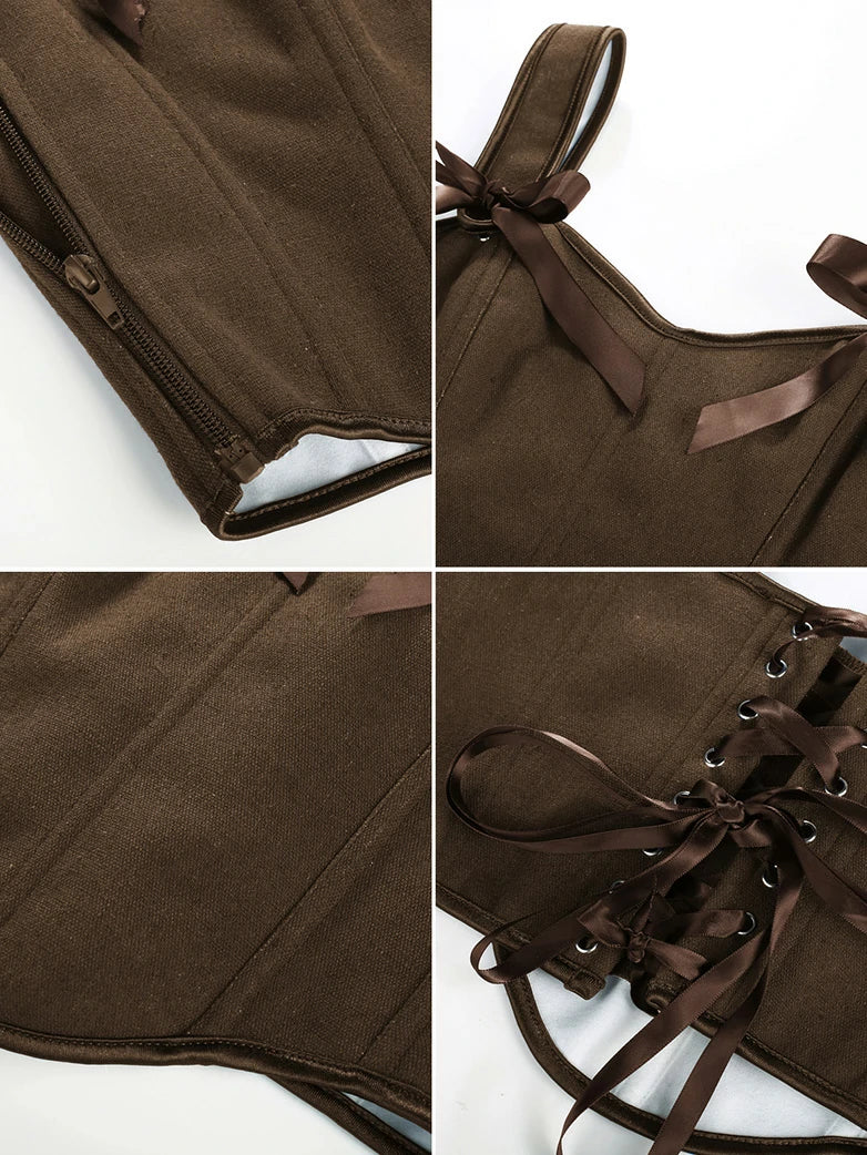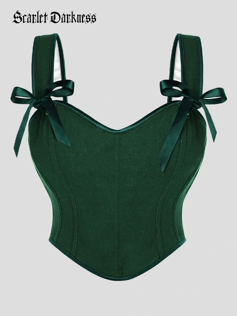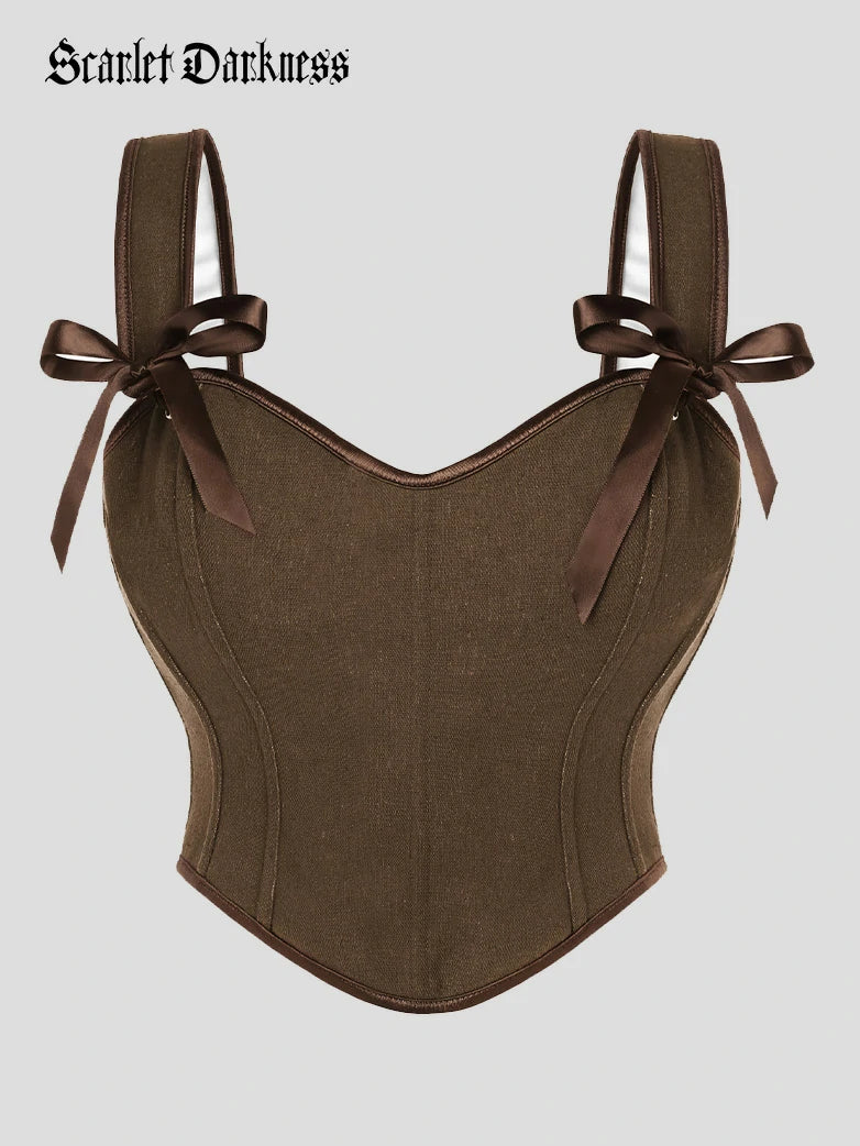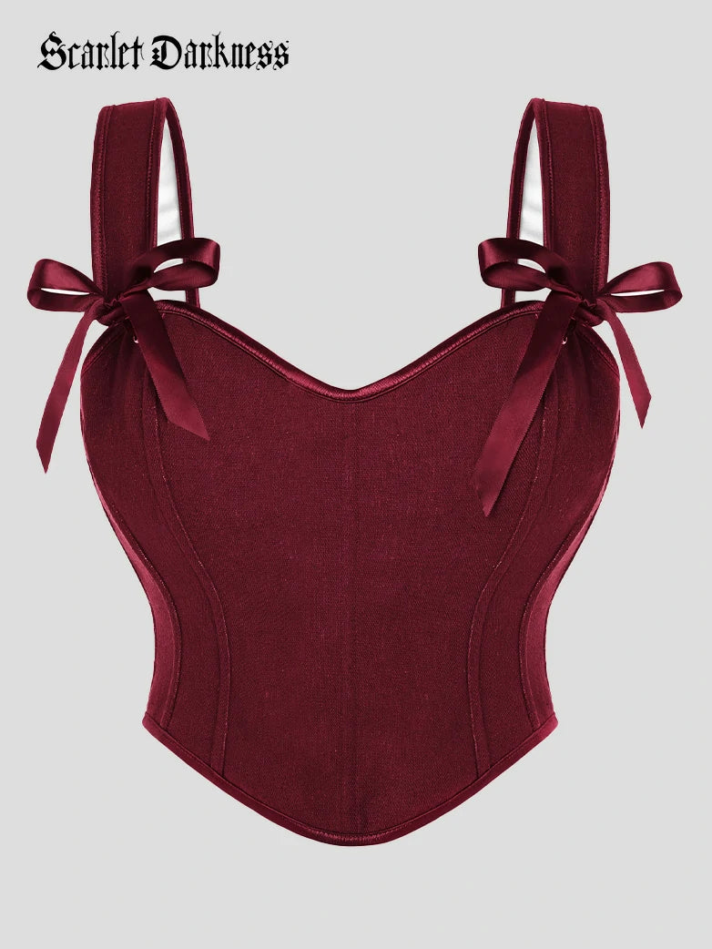 Scarlet Darkness Women Curved Hem Corset V-Neck Lace-up Back Body Shape Vest