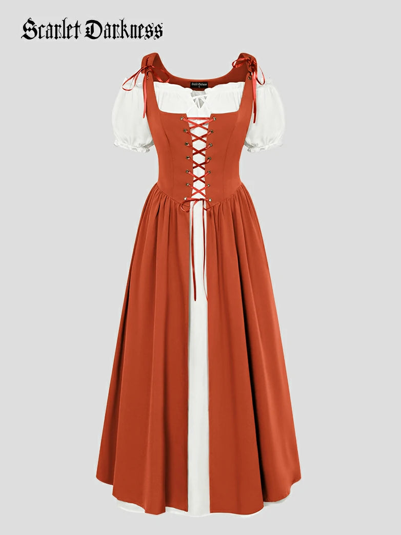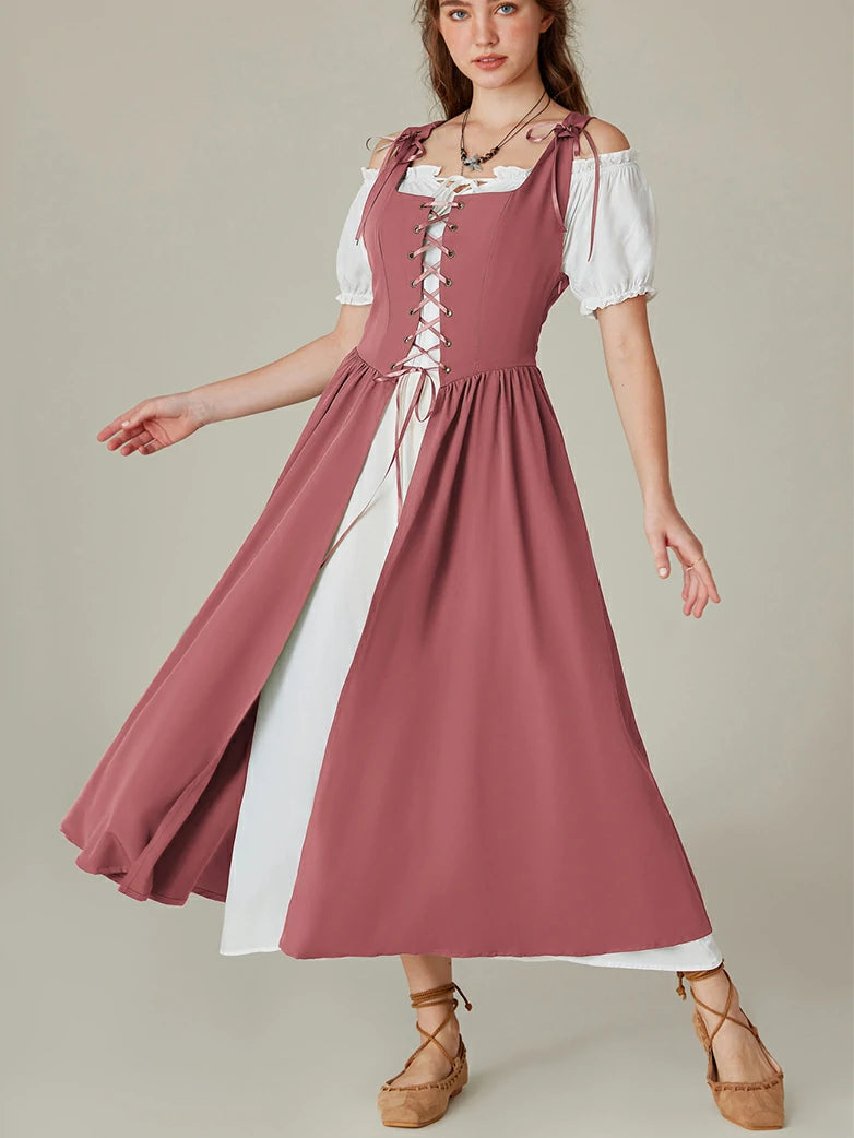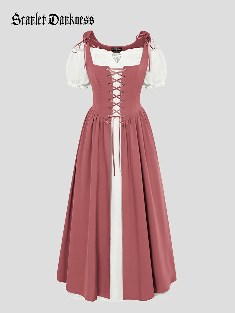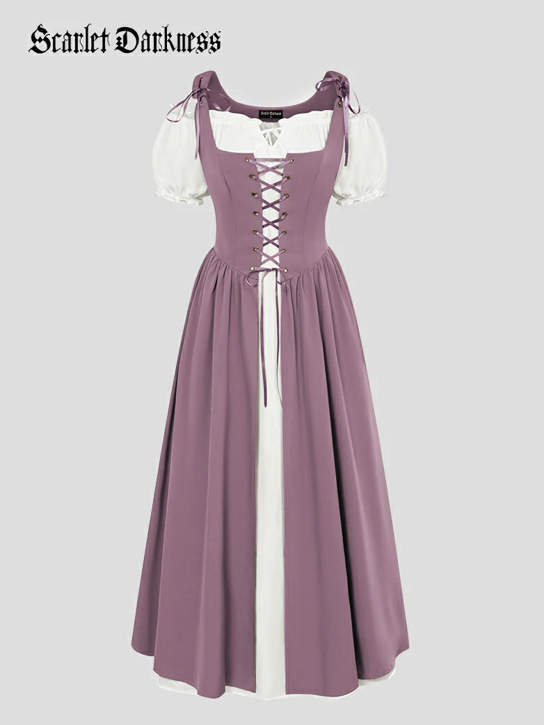 Scarlet Darkness Women Renaissance 2pcs Set Dress Square Neck Vest Dress+Off Shoulder Dress Outfits