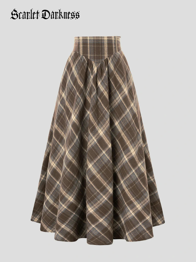 Scarlet Darkness Women Renaissance Maxi Skirt Elastic Plaided Swing Skirt