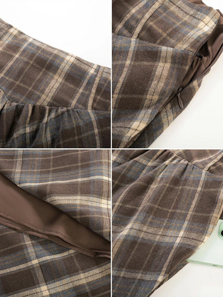 Women Renaissance Elastic Plaided Swing Skirt