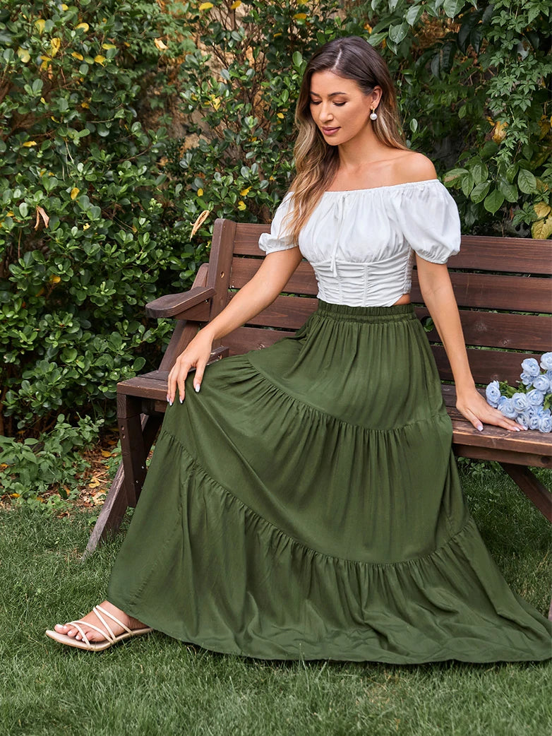 Renaissance Elastic Waist Swing Skirt with Pockets