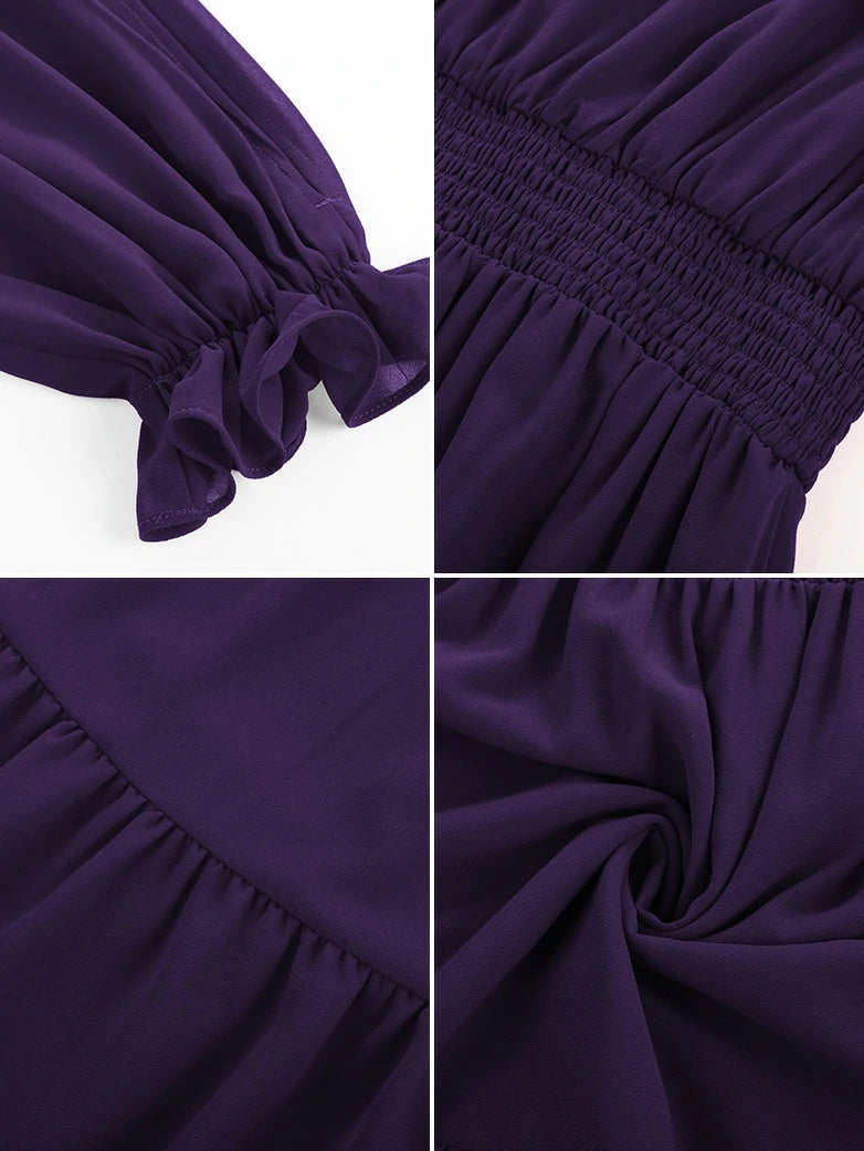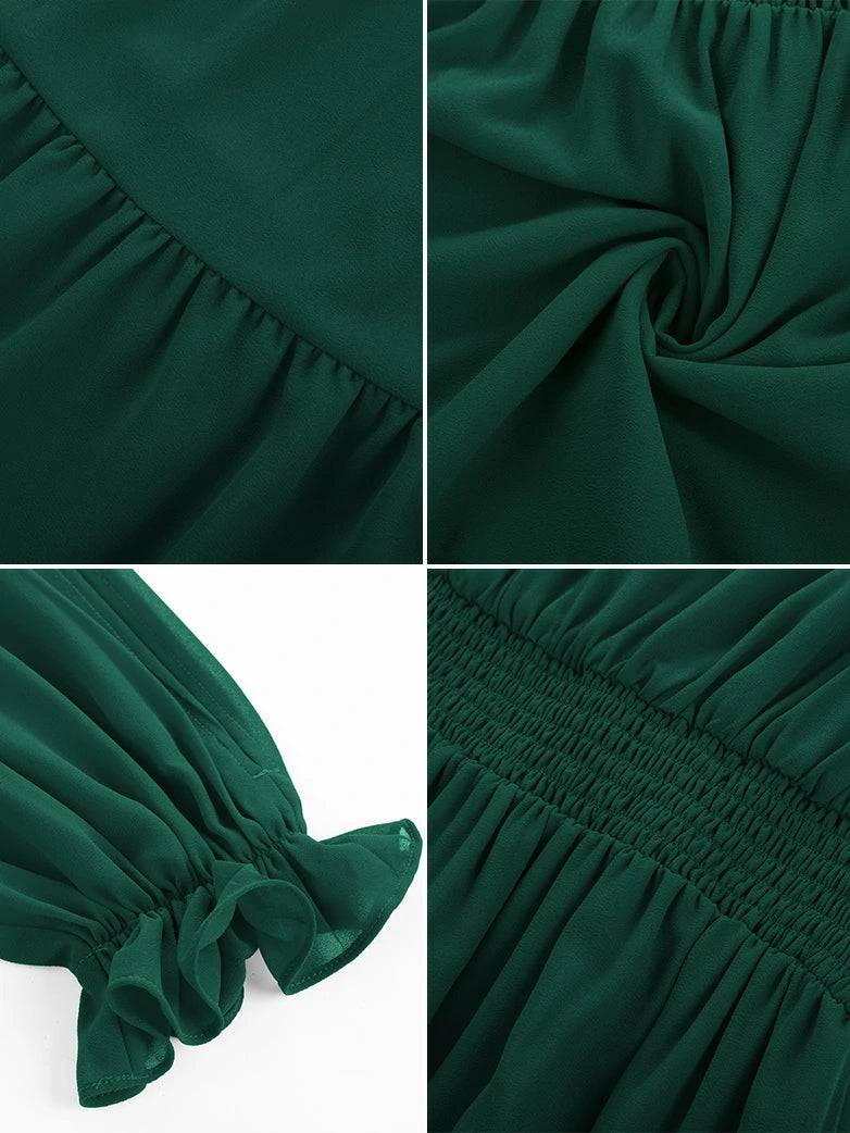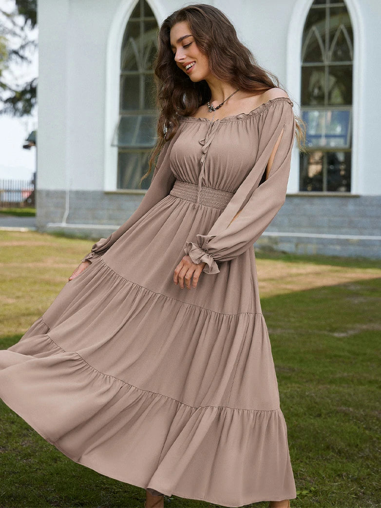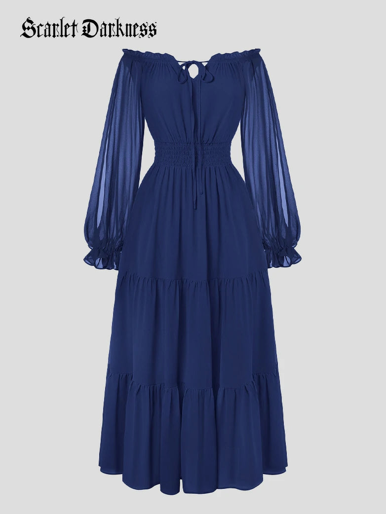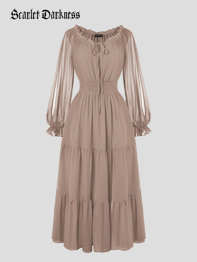Renaissance Pocket Dress Elastic Waist Chiffon Sleeve Long Sleeve Tiered Maxi Dress
