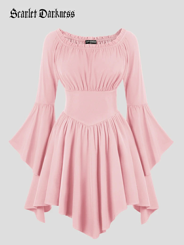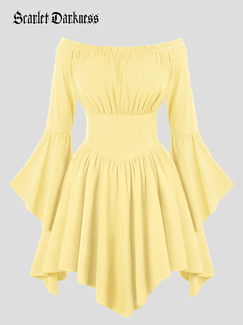 Scarlet Darkness Women Renaissance Irregular Hem Dress Long Sleeve Off Shoulder A-Line Dress