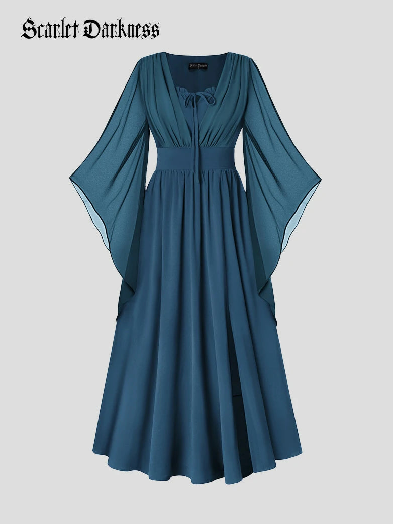 Scarlet Darkness Women Renaissance Pocket Dress Front Slit Maxi Dress Elastic Waist Dress