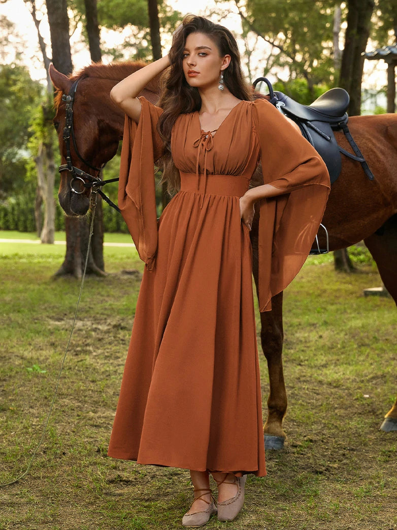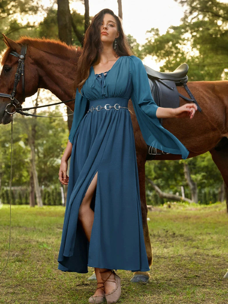 Renaissance Whimsical Front Slit Maxi Pocket Dress