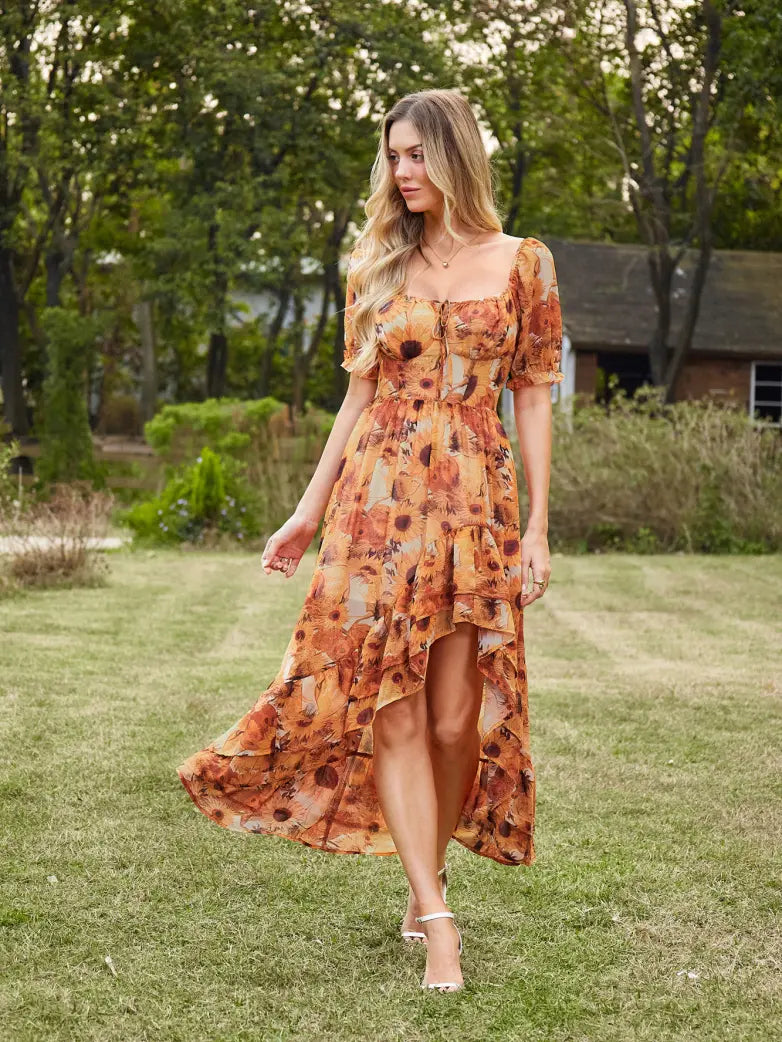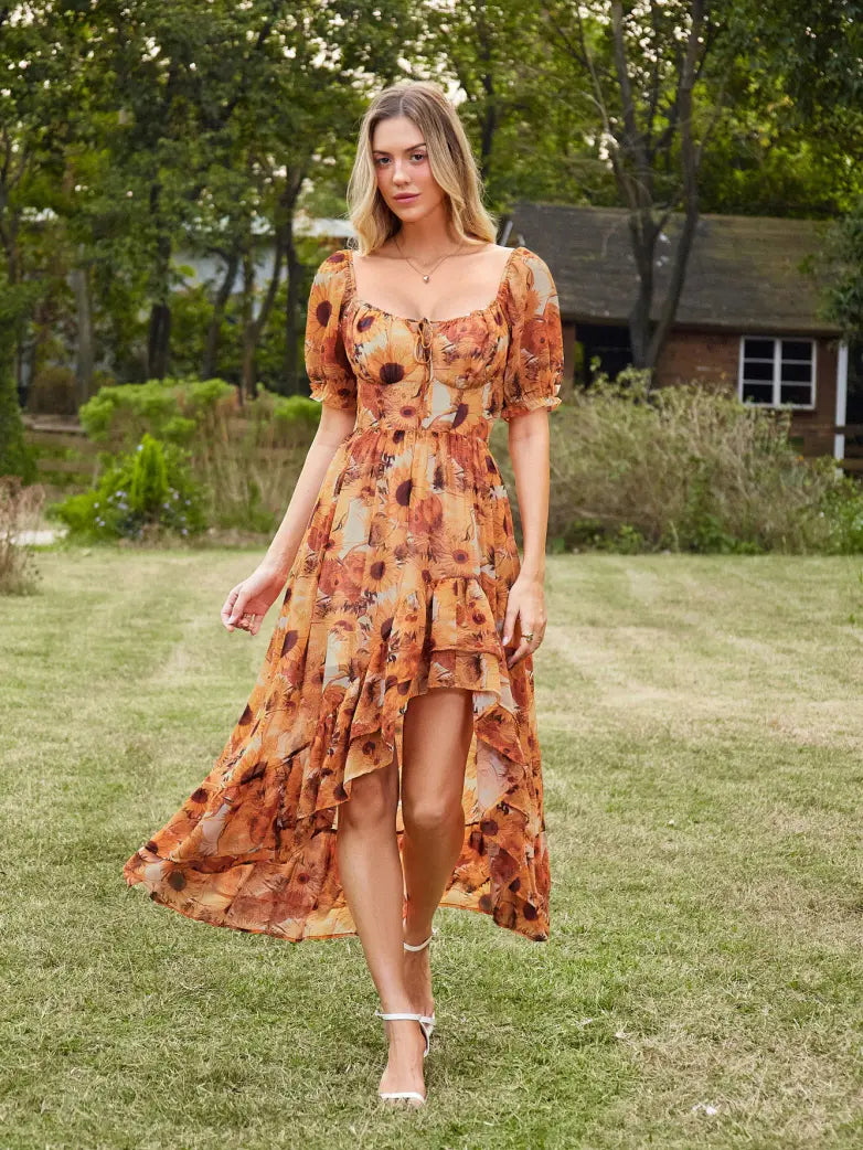 Spring Victorian Puff Sleeve Wedding Guest Dress