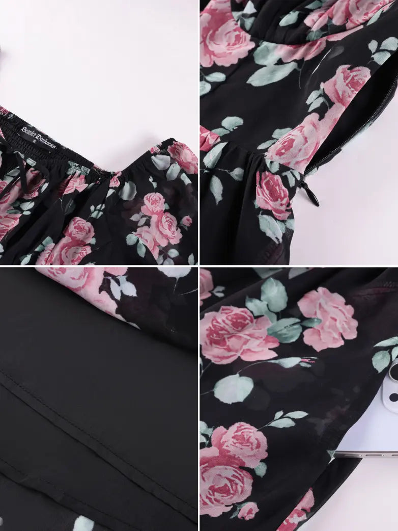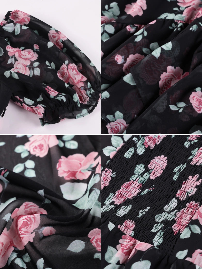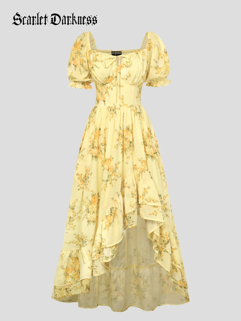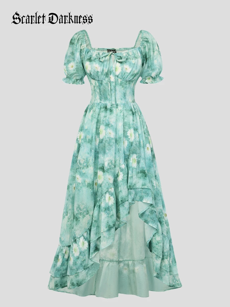 Scarlet Darkness Women Spring Victorian Puff Sleeve Wedding Guest Dress