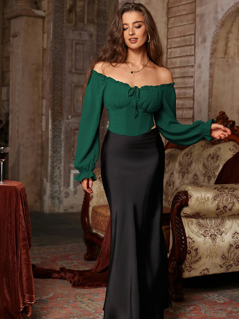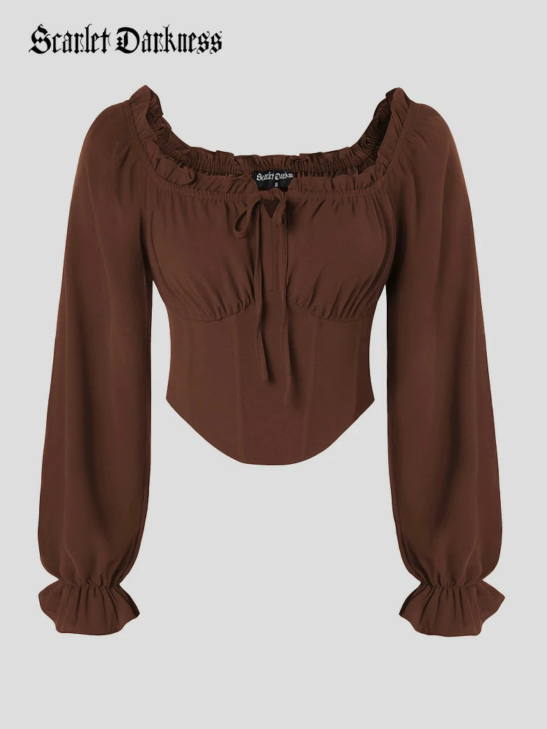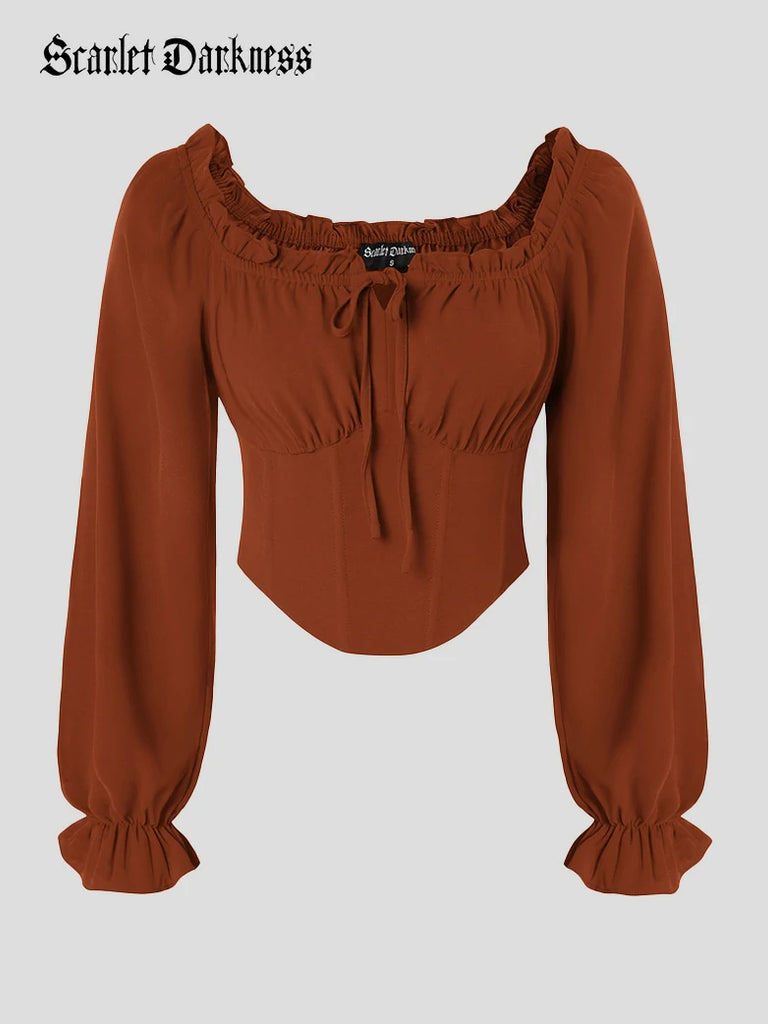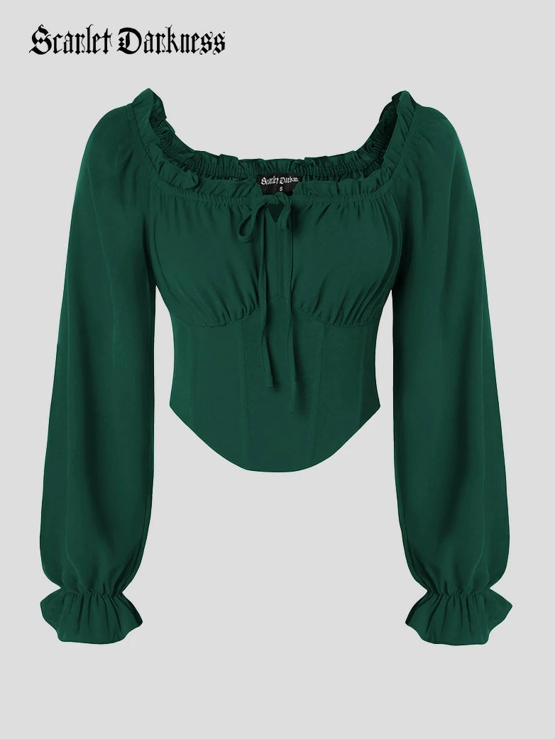 Scarlet Darkness Women Renaissance Cropped Length Tops Long Sleeve Elastic Waist Tops