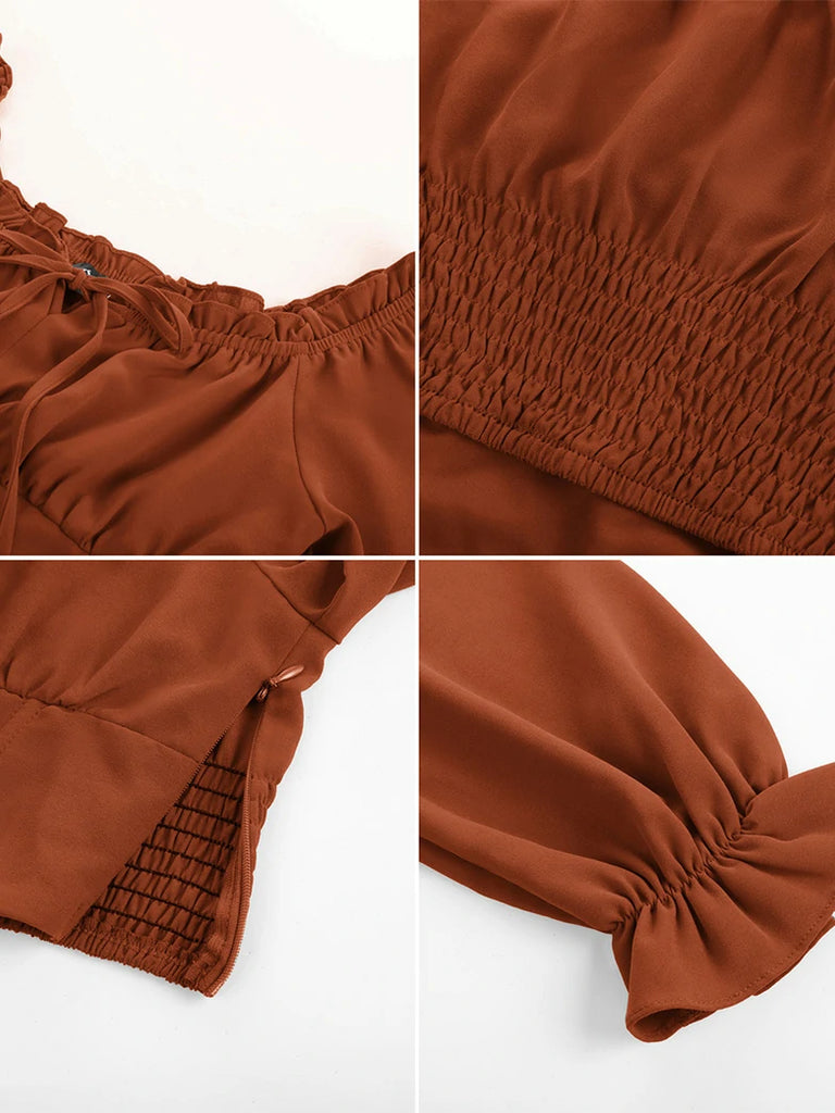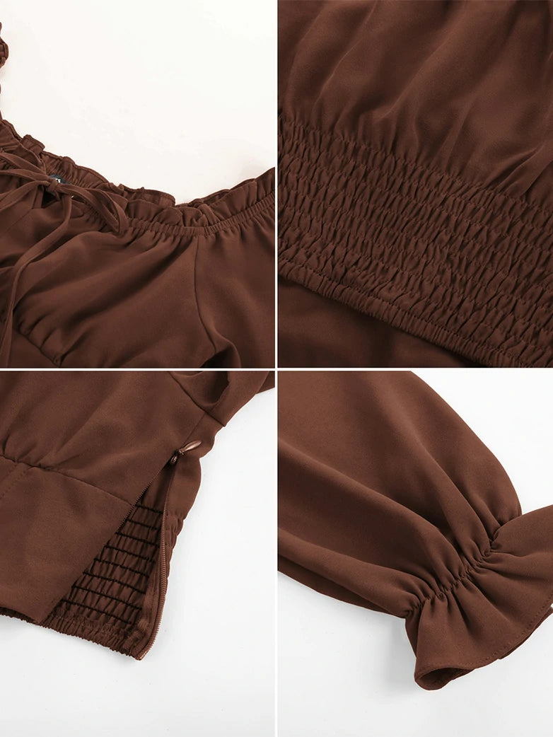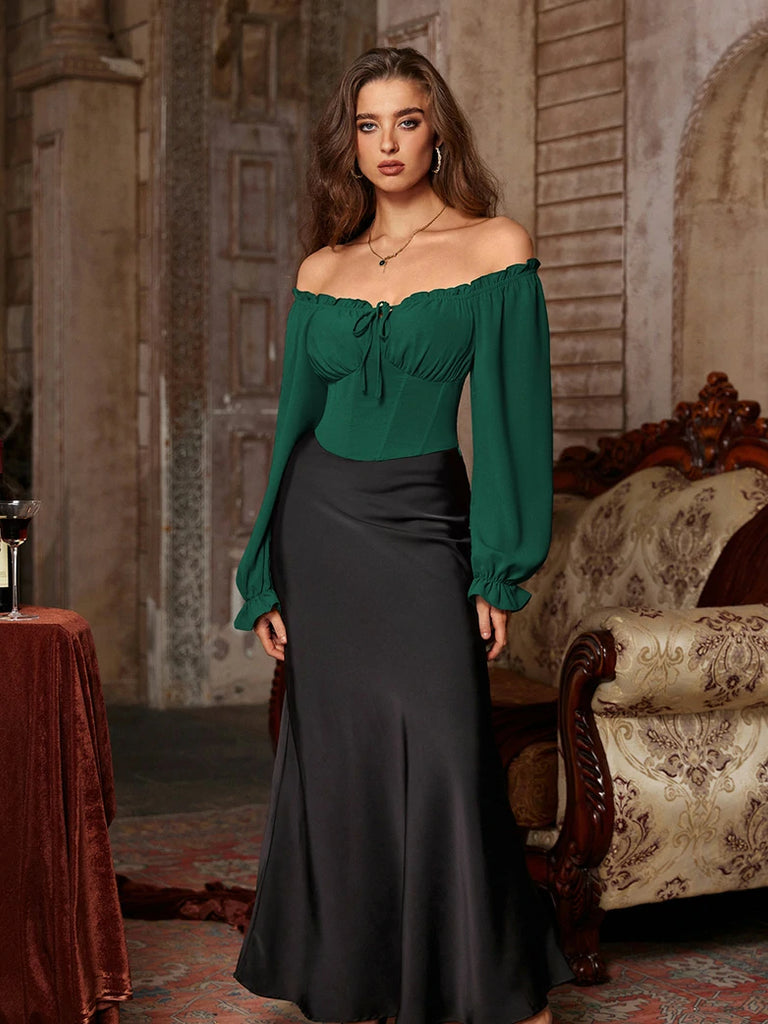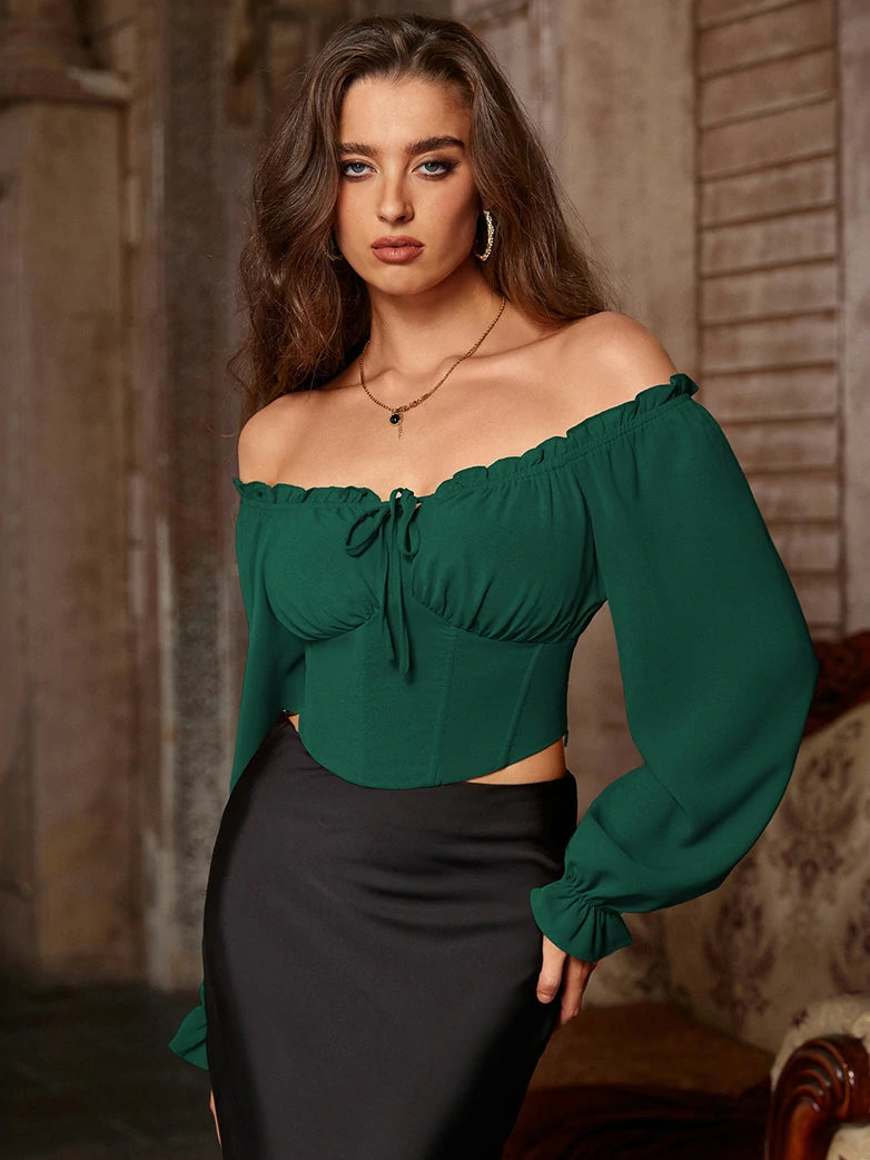 Scarlet Darkness Women Renaissance Cropped Length Tops Long Sleeve Elastic Waist Tops