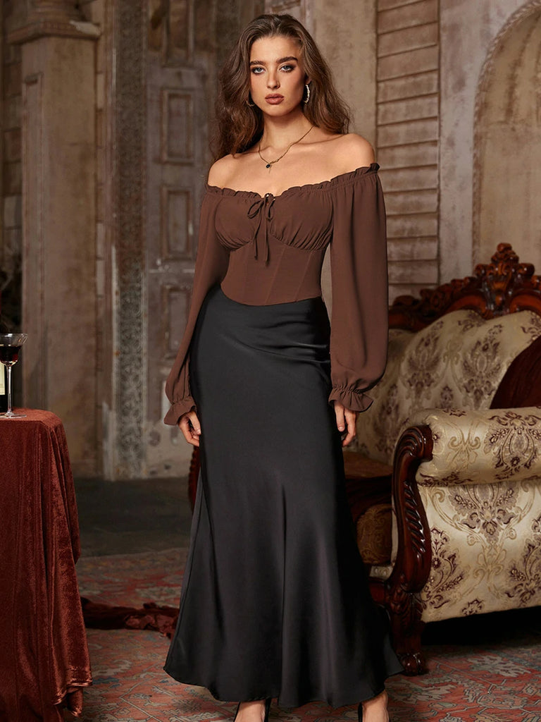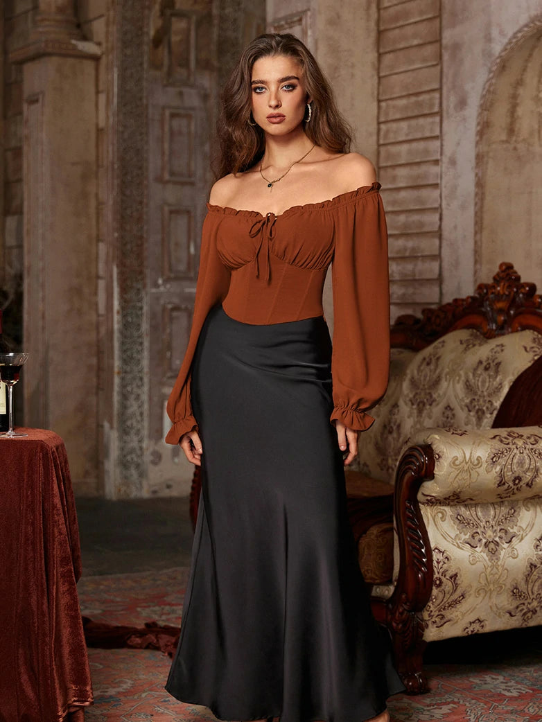 Add a touch of Renaissance flair to your wardrobe with our Scarlet Darkness Cropped Tops. The elastic waistband ensures a comfortable fit, while the long sleeves provide coverage.