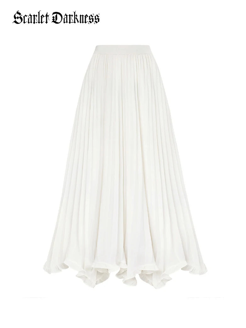 Scarlet Darkness Women Renaissance Irregular Hem Skirt Elastic Waist Pleated Swing Skirt