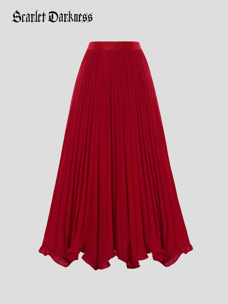 Step into a world of whimsy with this Scarlet Darkness Renaissance skirt. Its playful irregular hem and flowing pleats create a charming swing that moves with you.