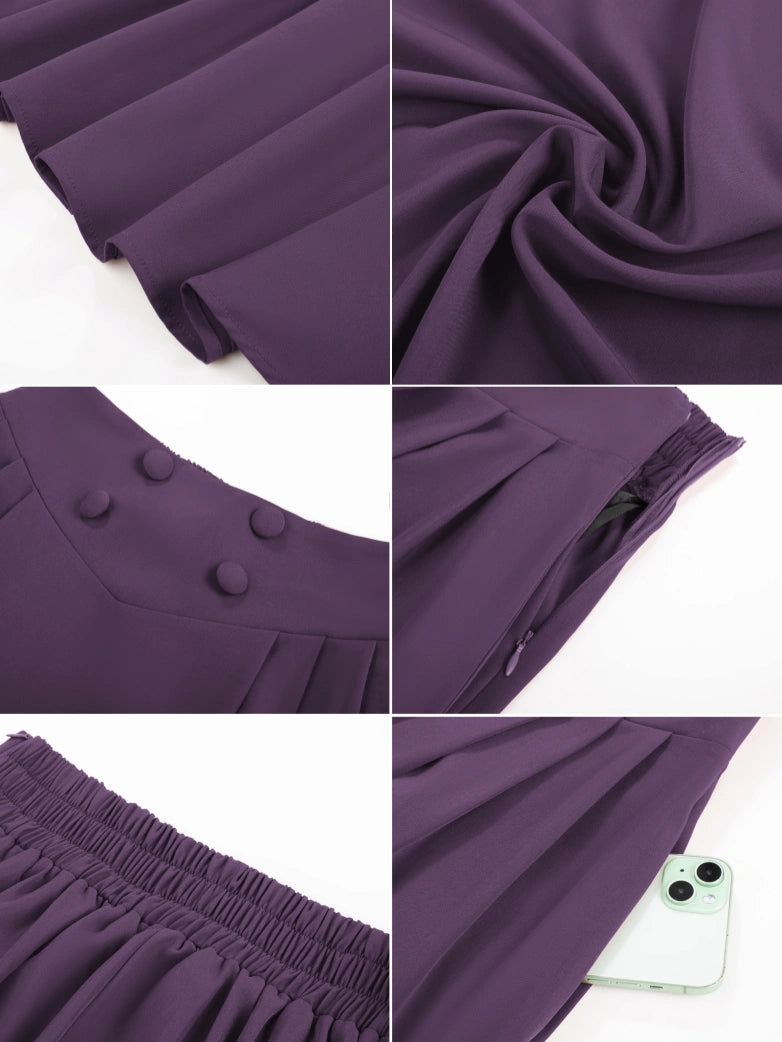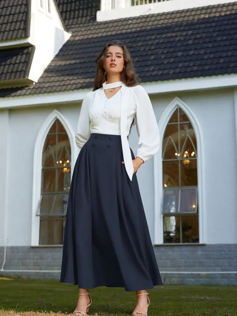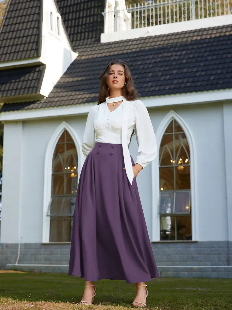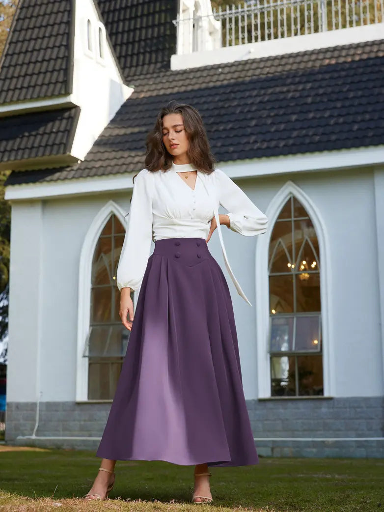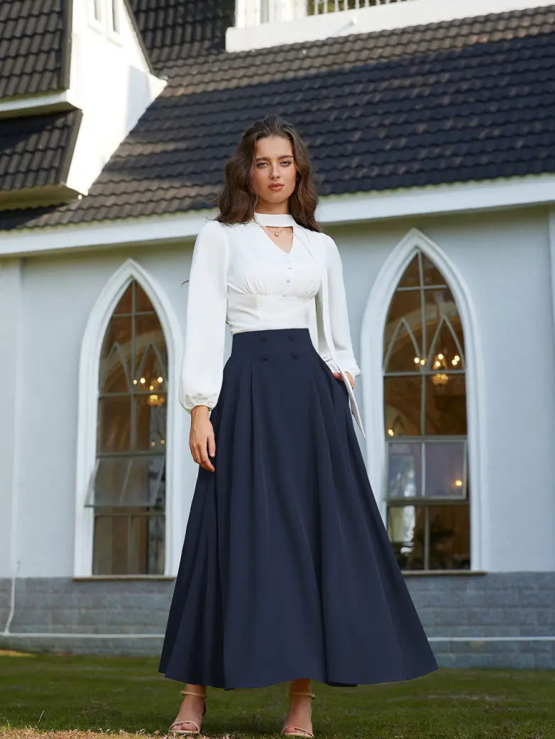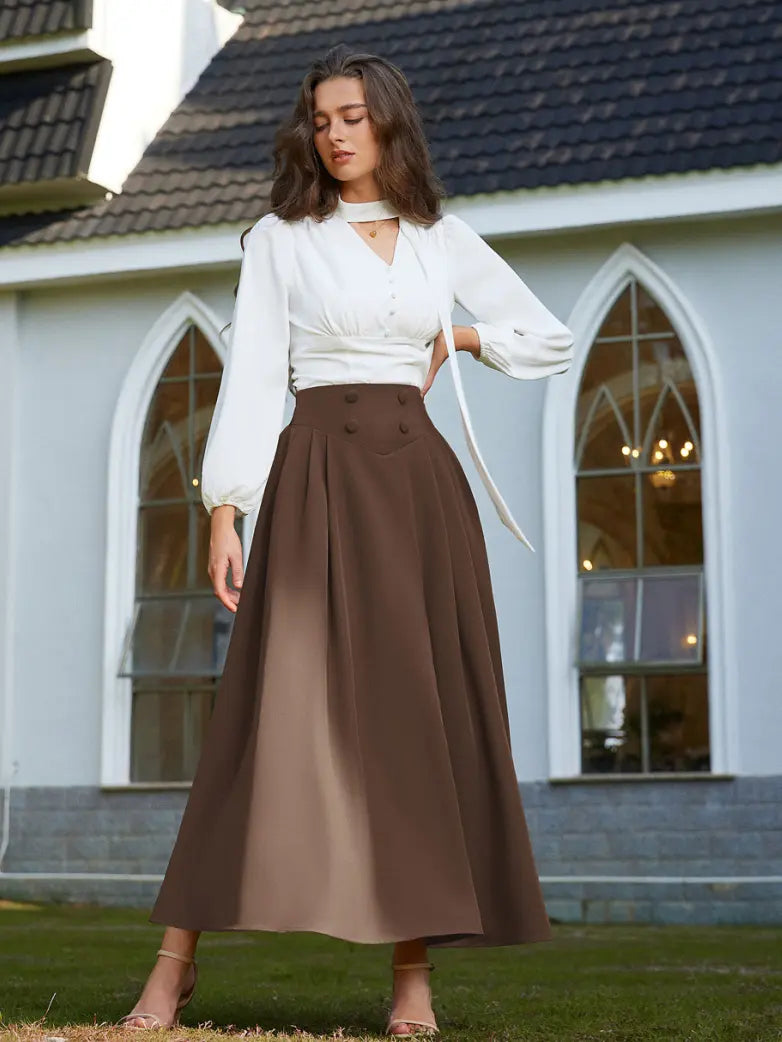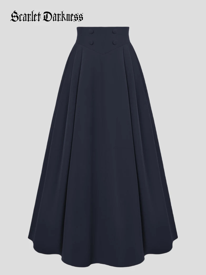 Scarlet Darkness Women Renaissance Swing Skirt Elastic Waist Buttons Decorated Maxi Skirt