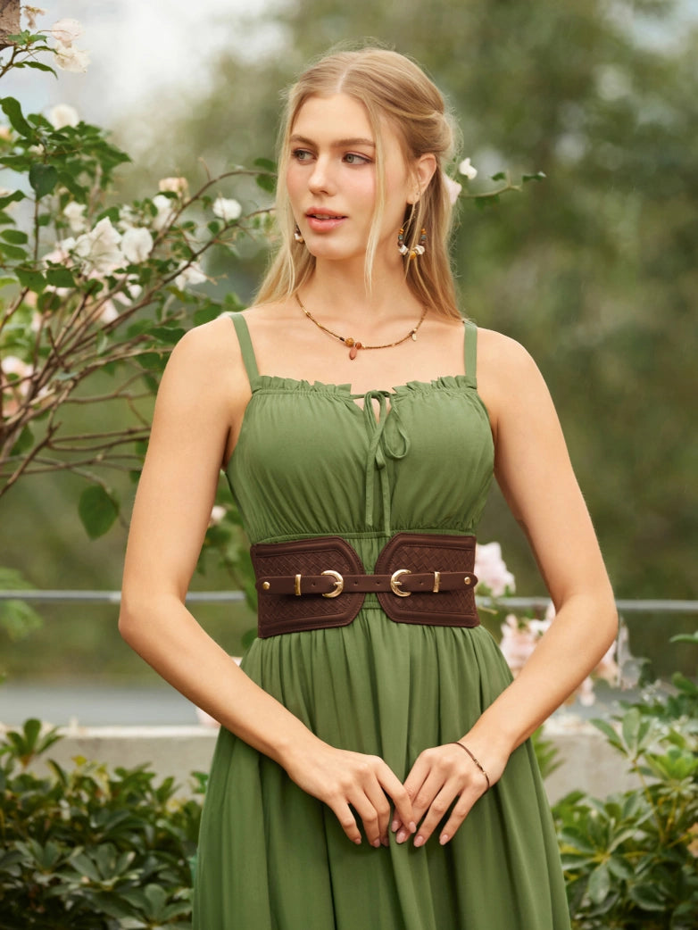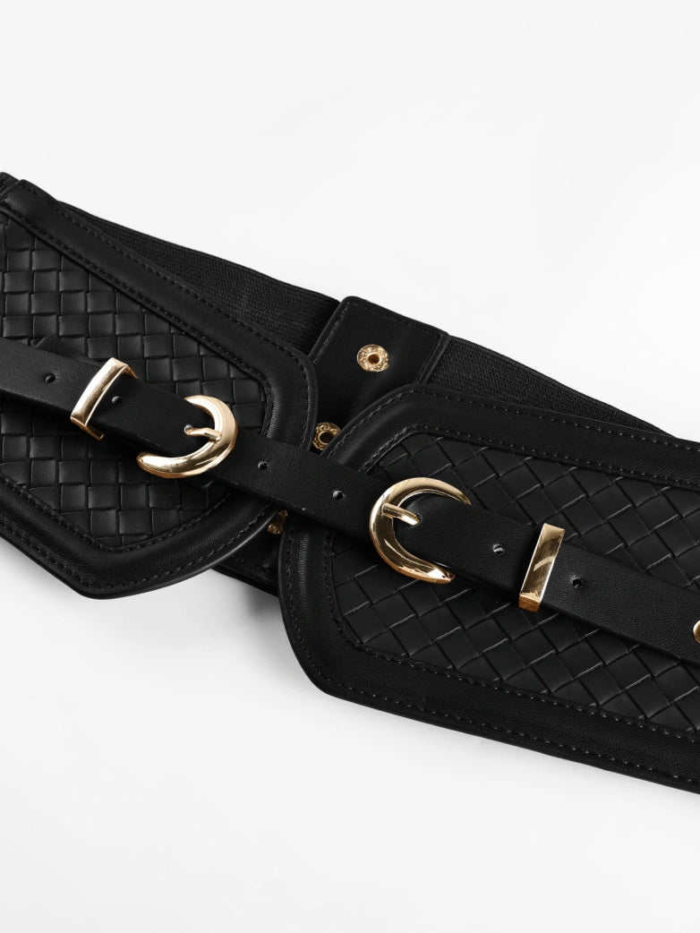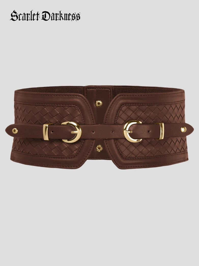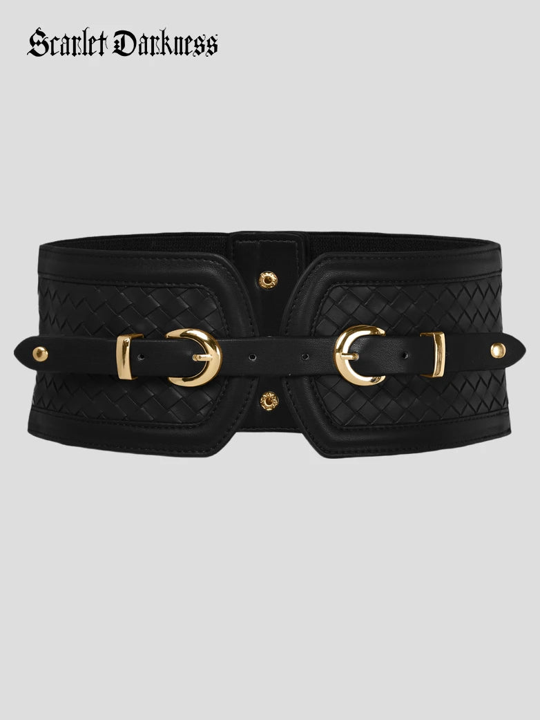 Cinch your waist with medieval flair! This striking Renaissance-inspired belt features a dramatic double buckle design that commands attention. The wide waistband provides comfortable support while adding instant character to any outfit—whether you're channeling gothic elegance or channeling your inner fantasy warrior.
