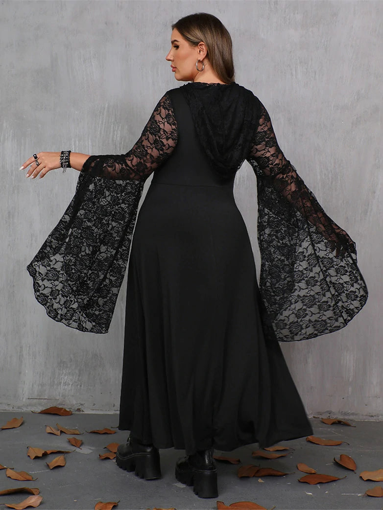 Women Plus Size Gothic Spliced Lace Hem Slit Dress