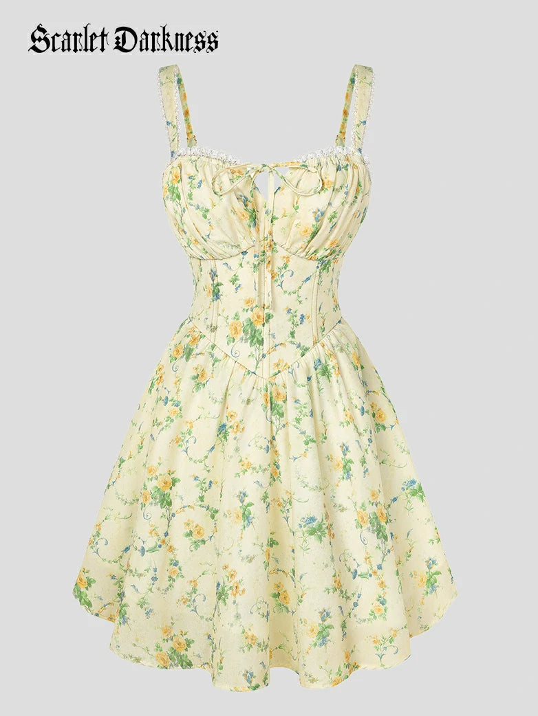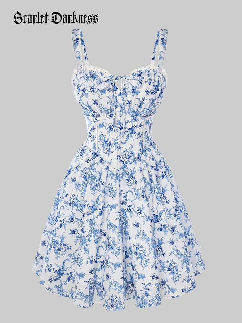 Camisole à laçage jardin à encolure en cœur Robe trapèze