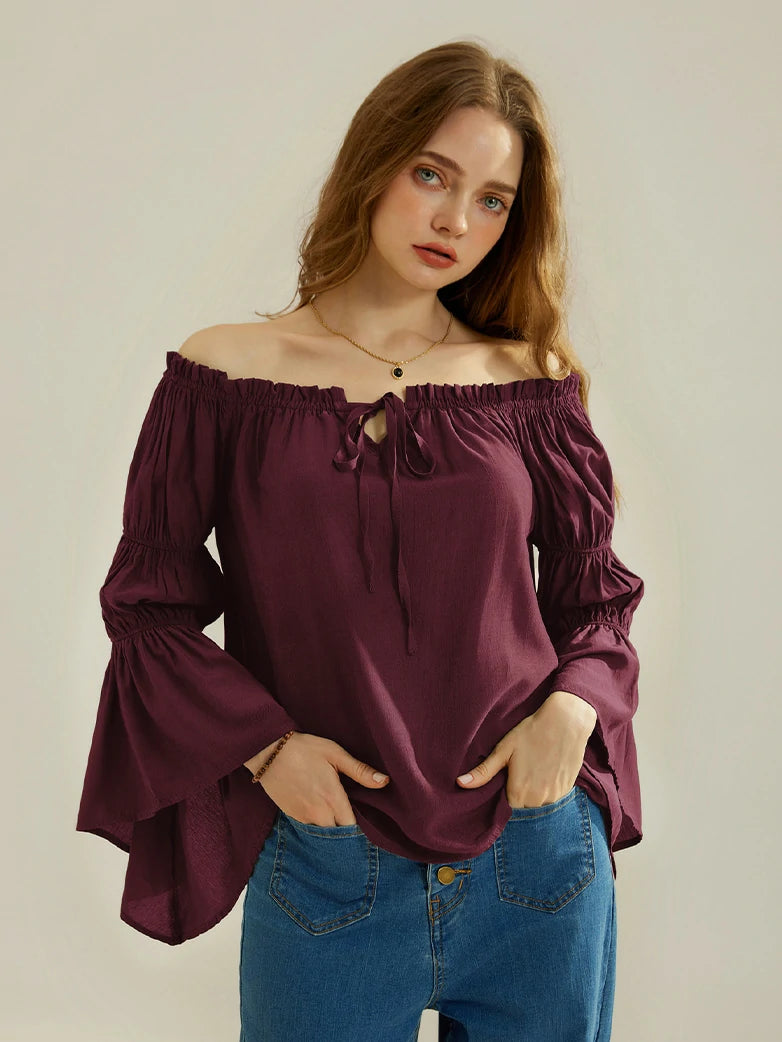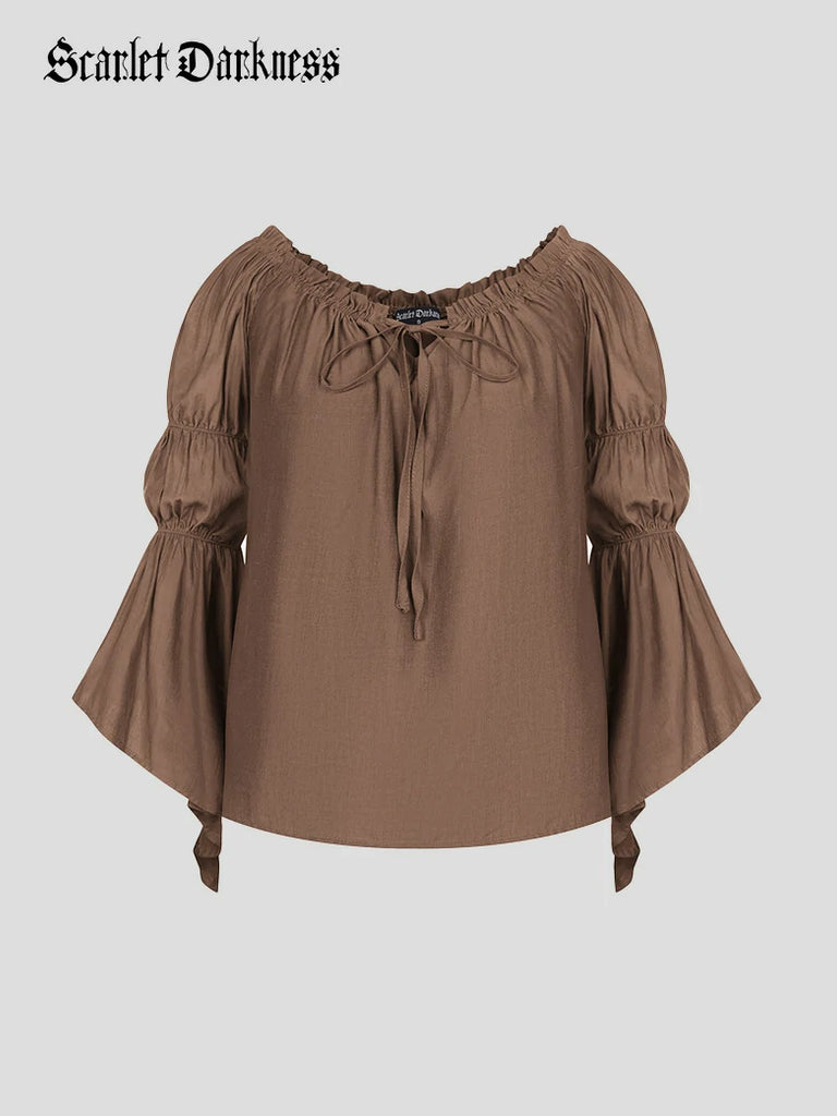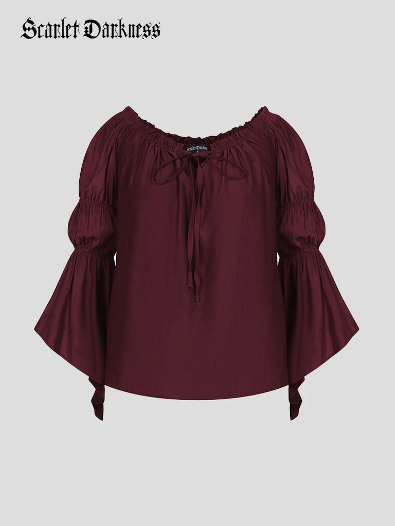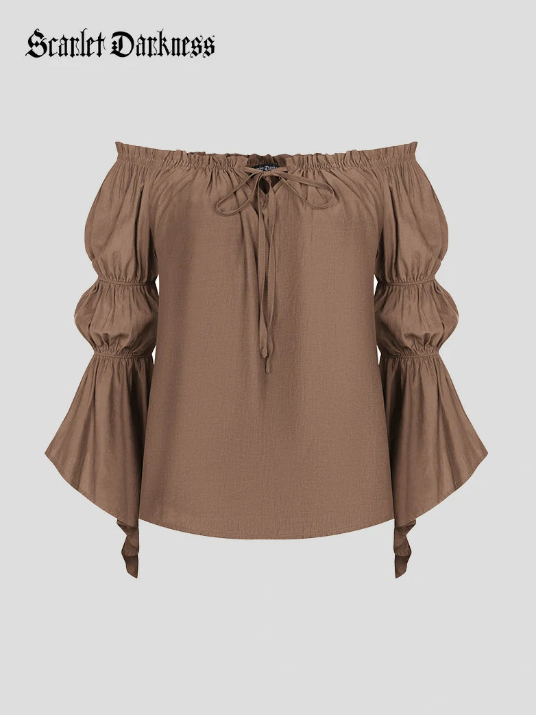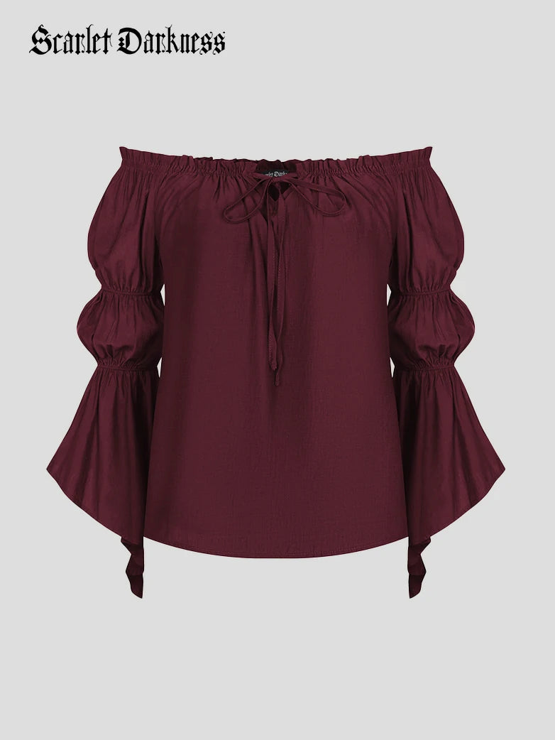 Scarlet Darkness Women Renaissance Off Shoulder Tops Long Virago Sleeve Straight Tops