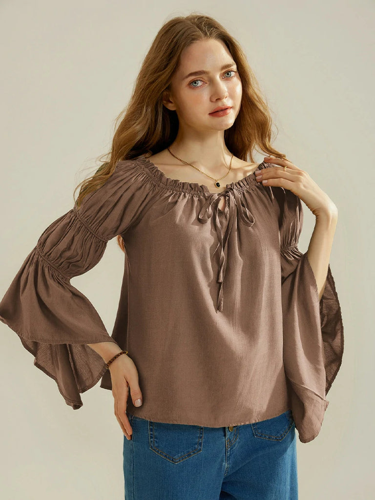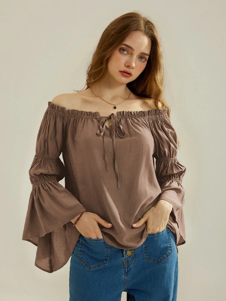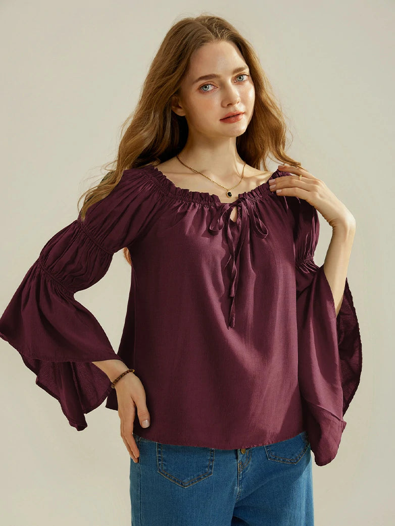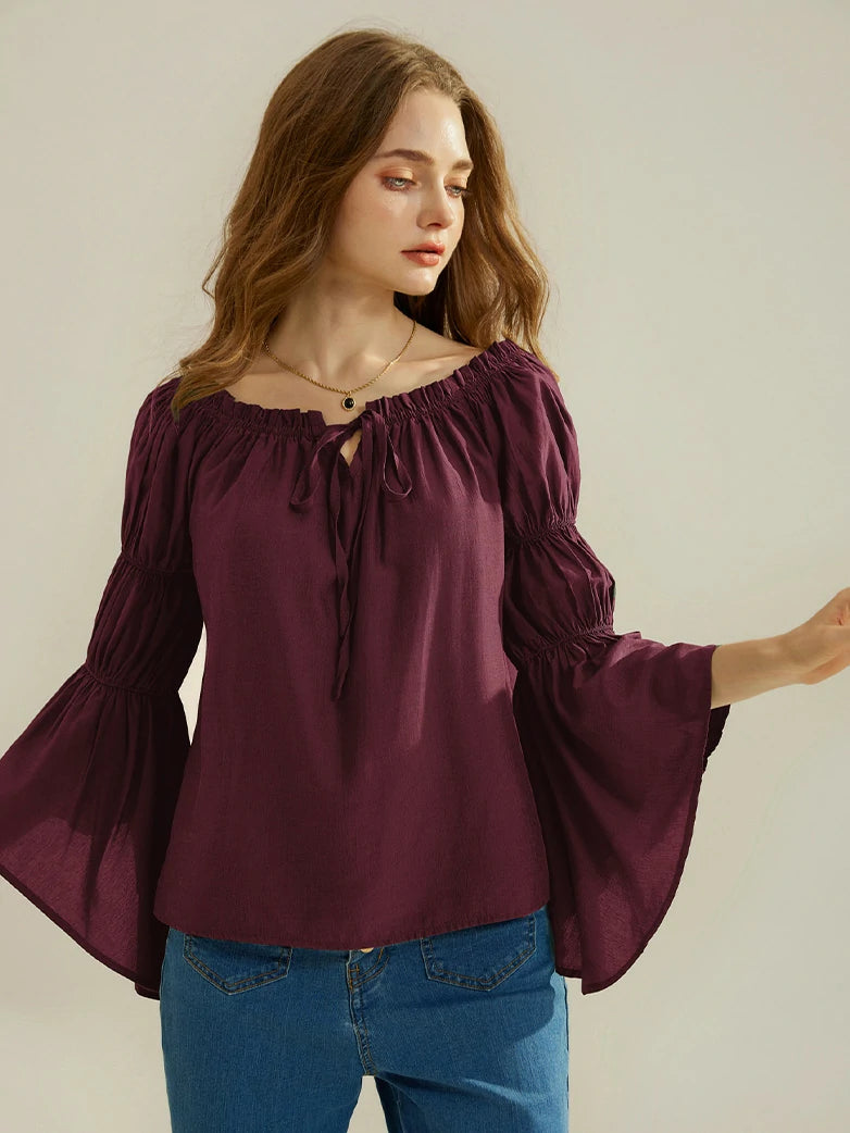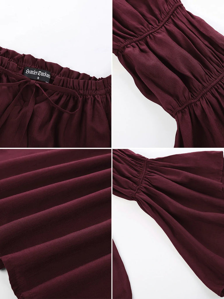 Scarlet Darkness Women Renaissance Off Shoulder Tops Long Virago Sleeve Straight Tops