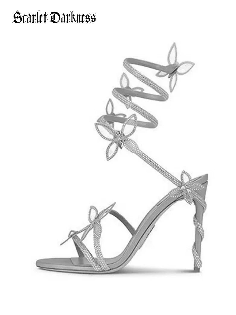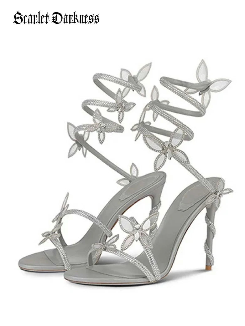 Step into enchantment with these whimsical butterfly high heel sandals, the perfect companion for your floral dress collection.