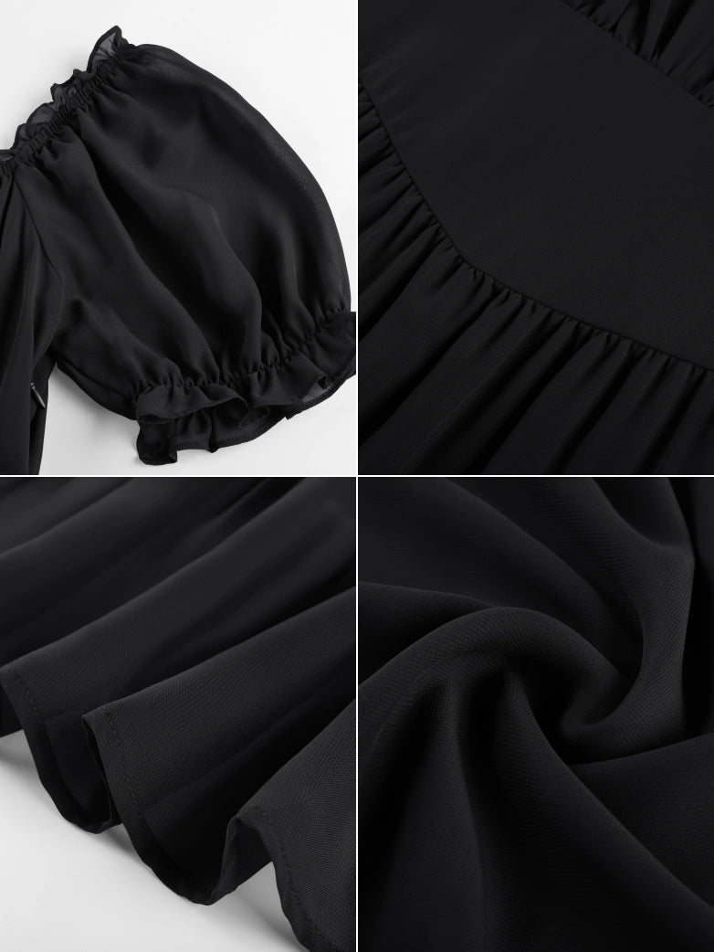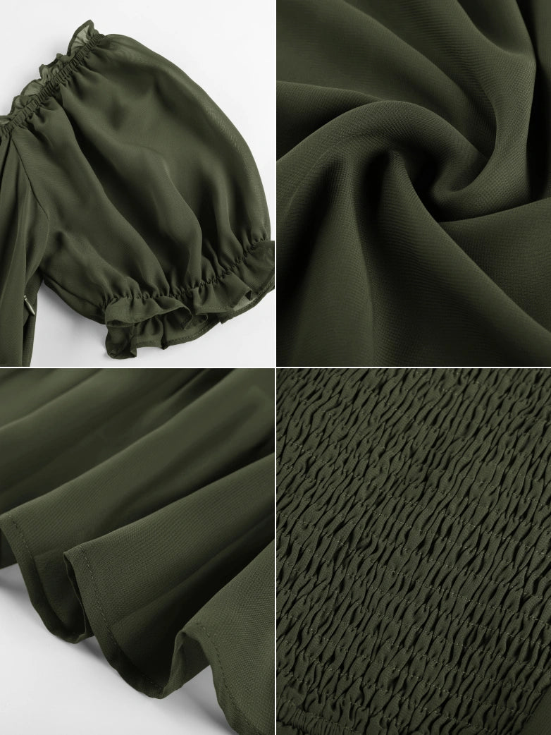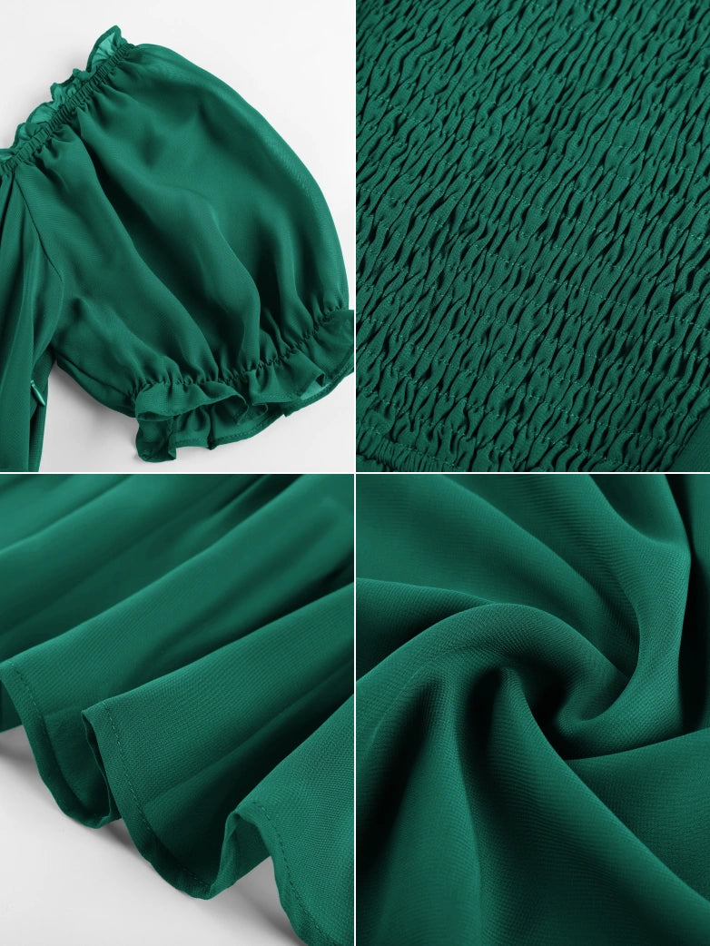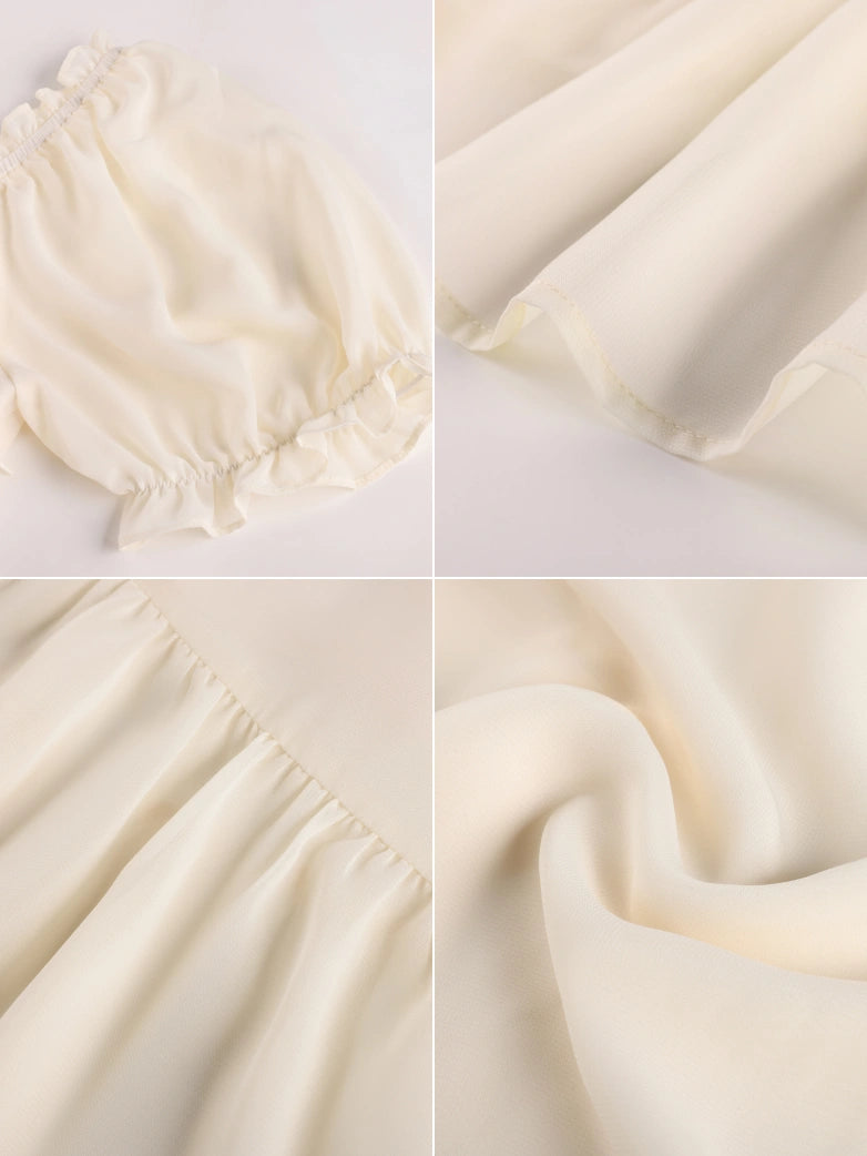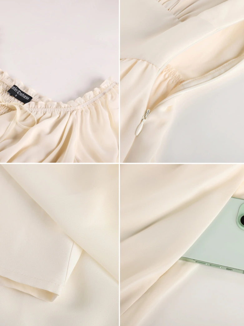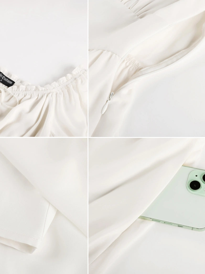 2) Square neck with tie, can also be worn as off-shoulder neck