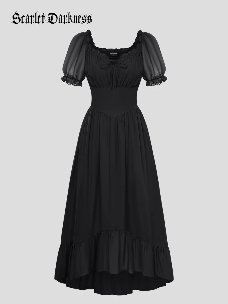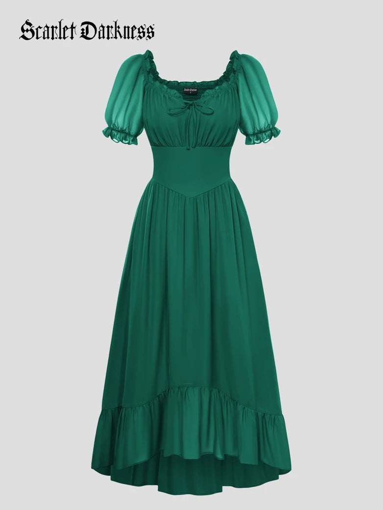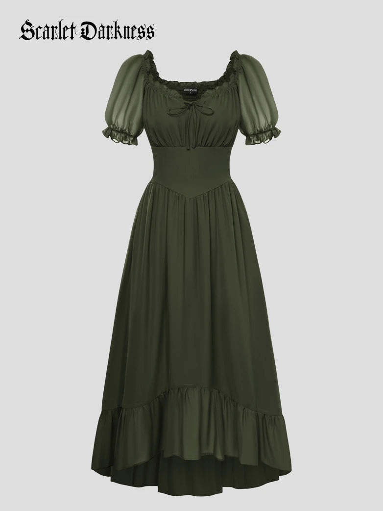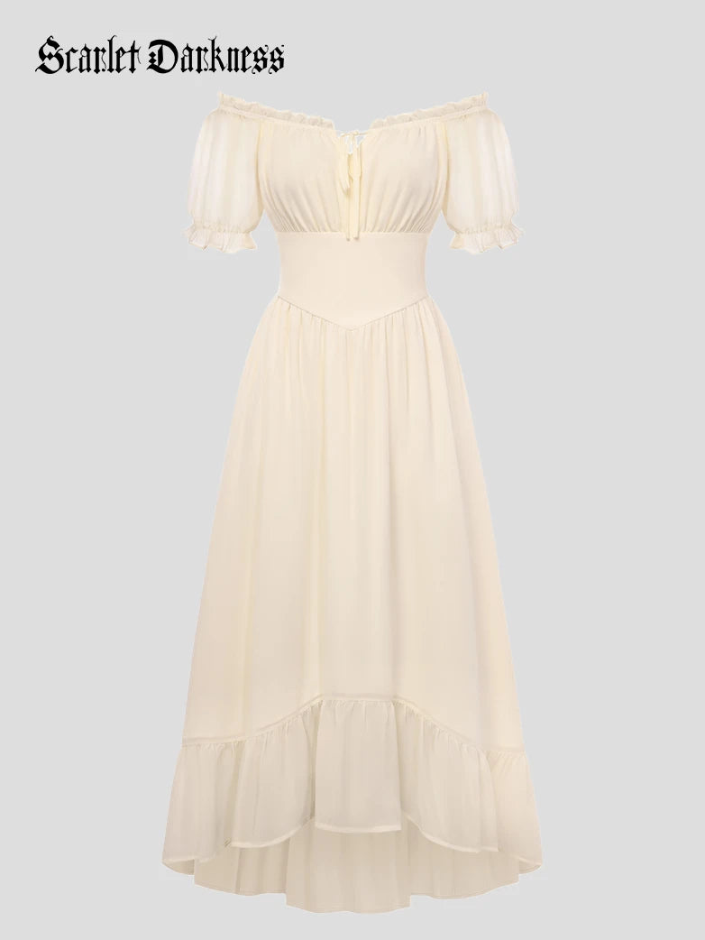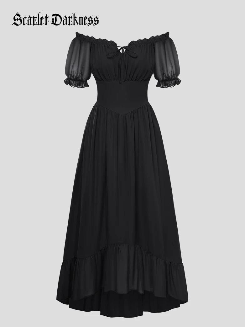 Scarlet Darkness Women Fantasy Renaissance Off Shoulder Chiffon Pocket Dress Women Maxi A-Line Dress