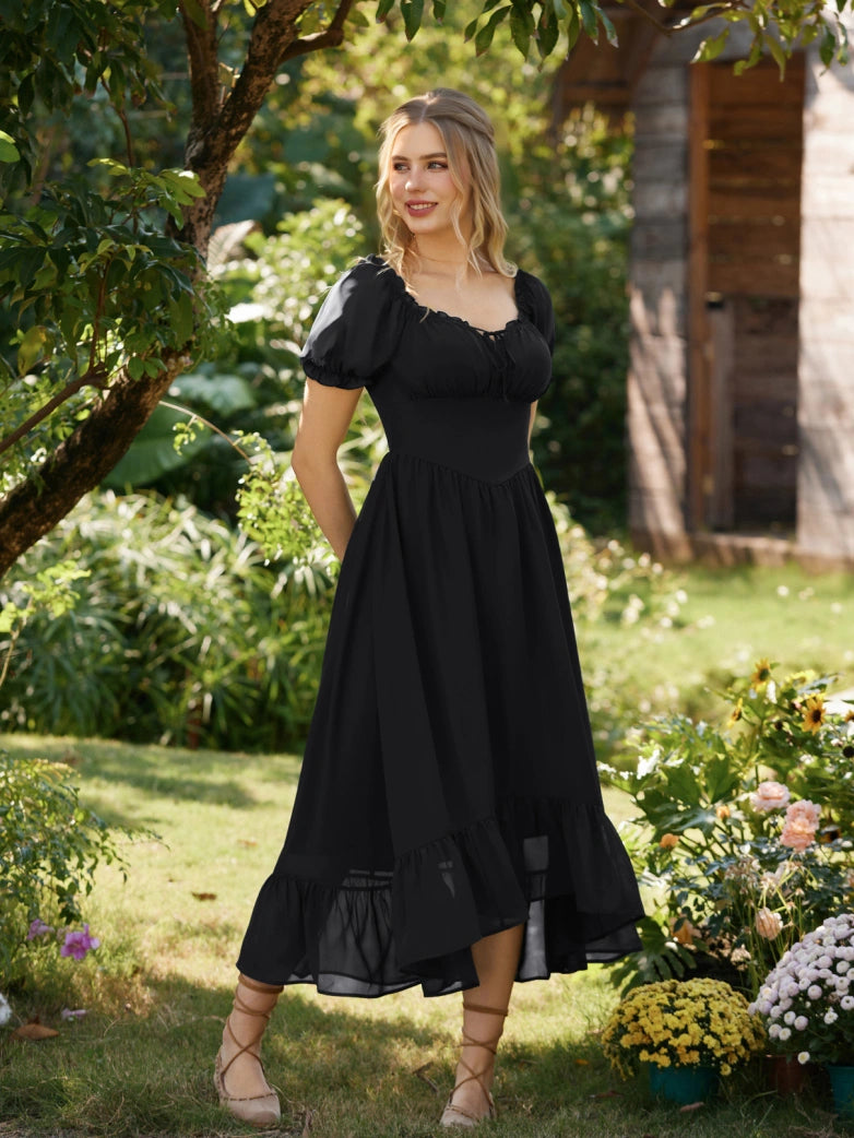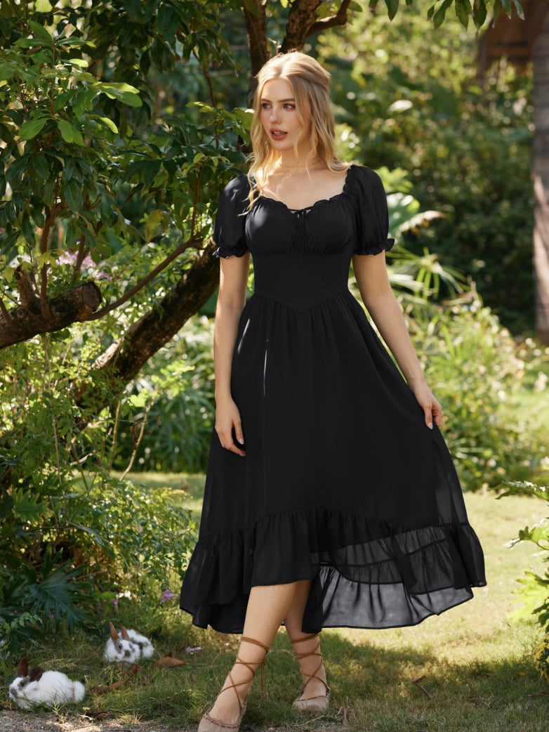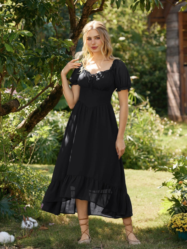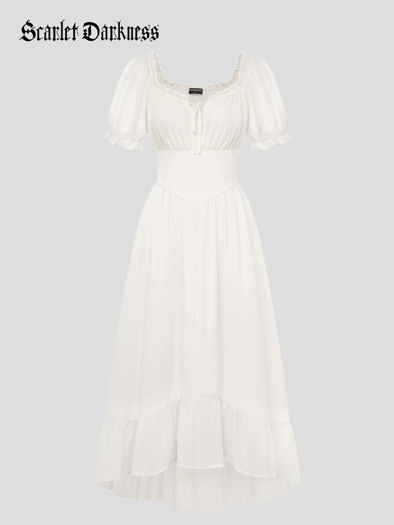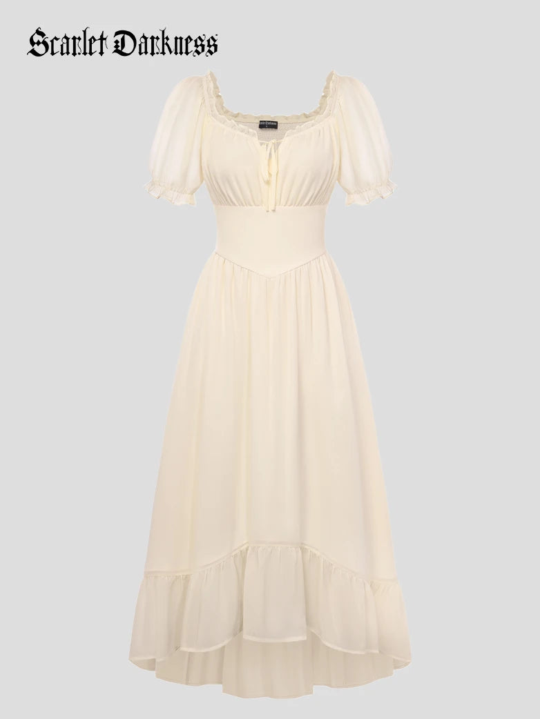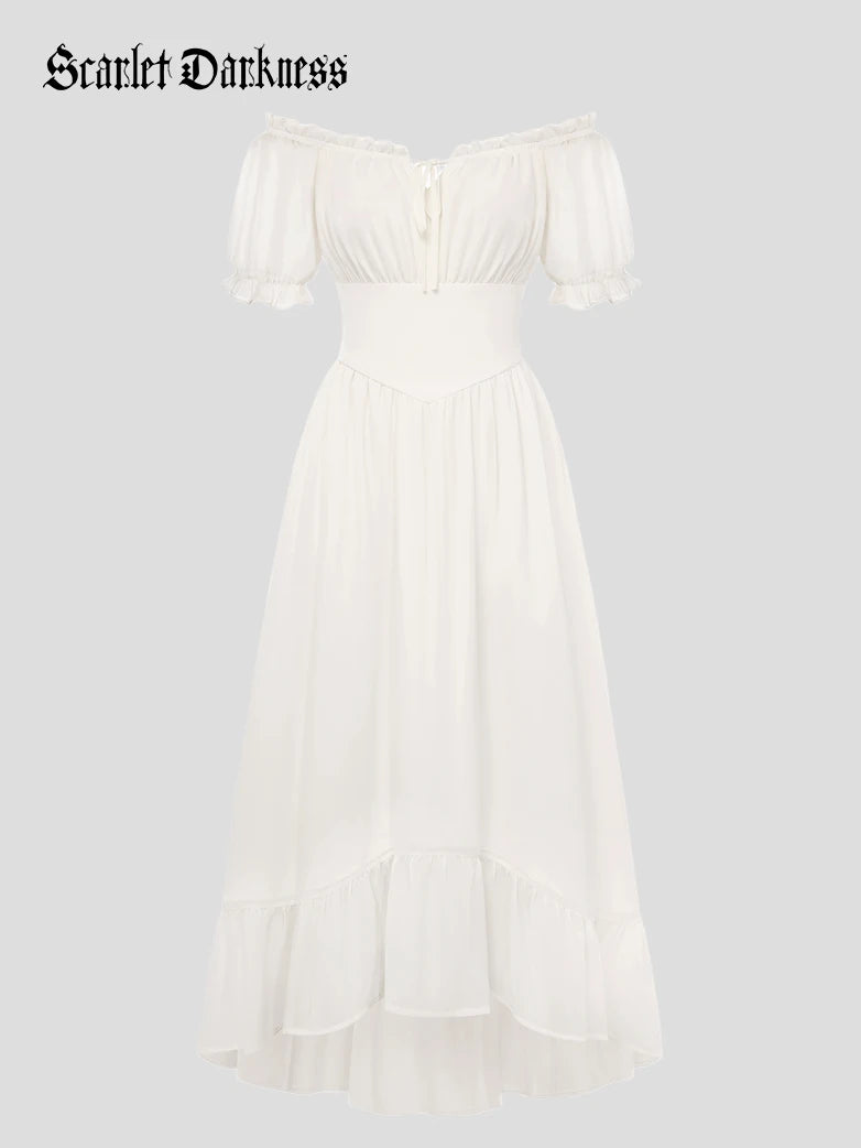 Scarlet Darkness Women Fantasy Renaissance Off Shoulder Chiffon Pocket Dress Women Maxi A-Line Dress