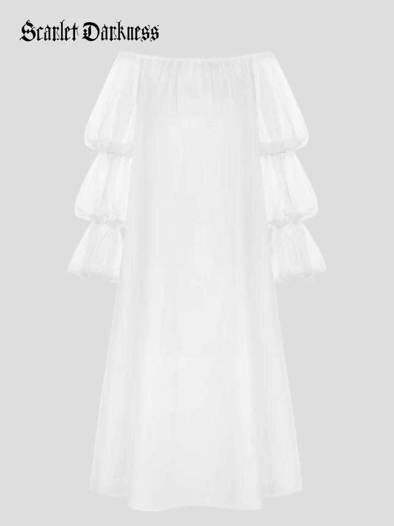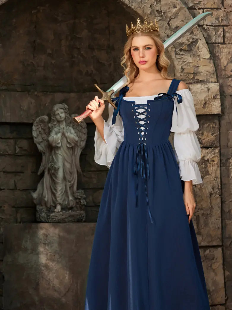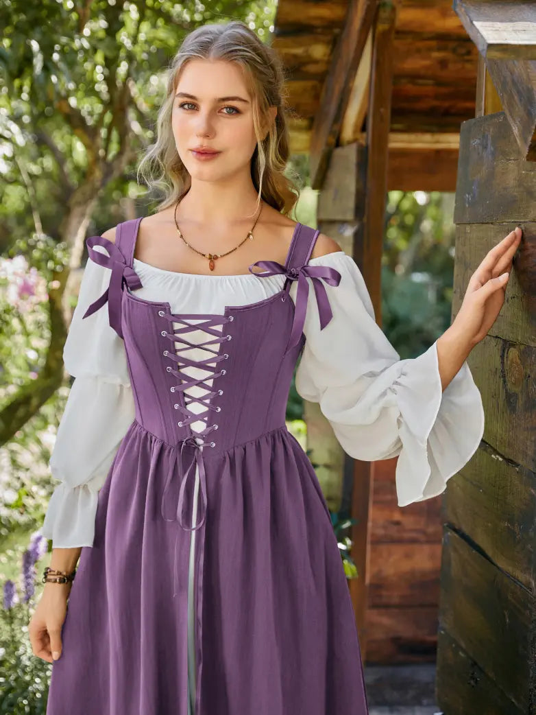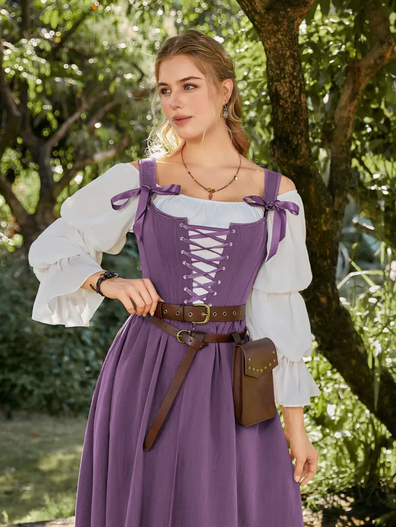 Scarlet Darkness Women Renaissance 2pcs Set Costume Off Shoulder Inner Dress+Vest Dress