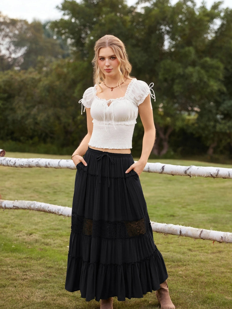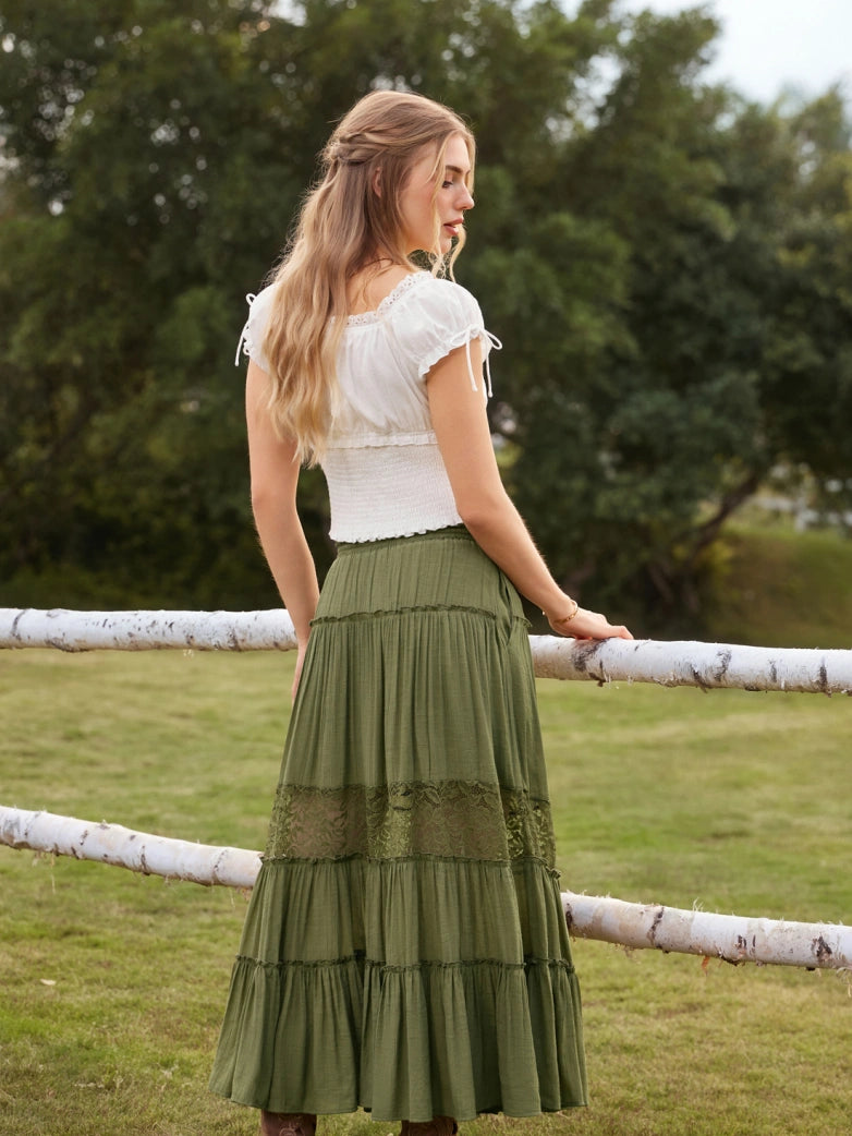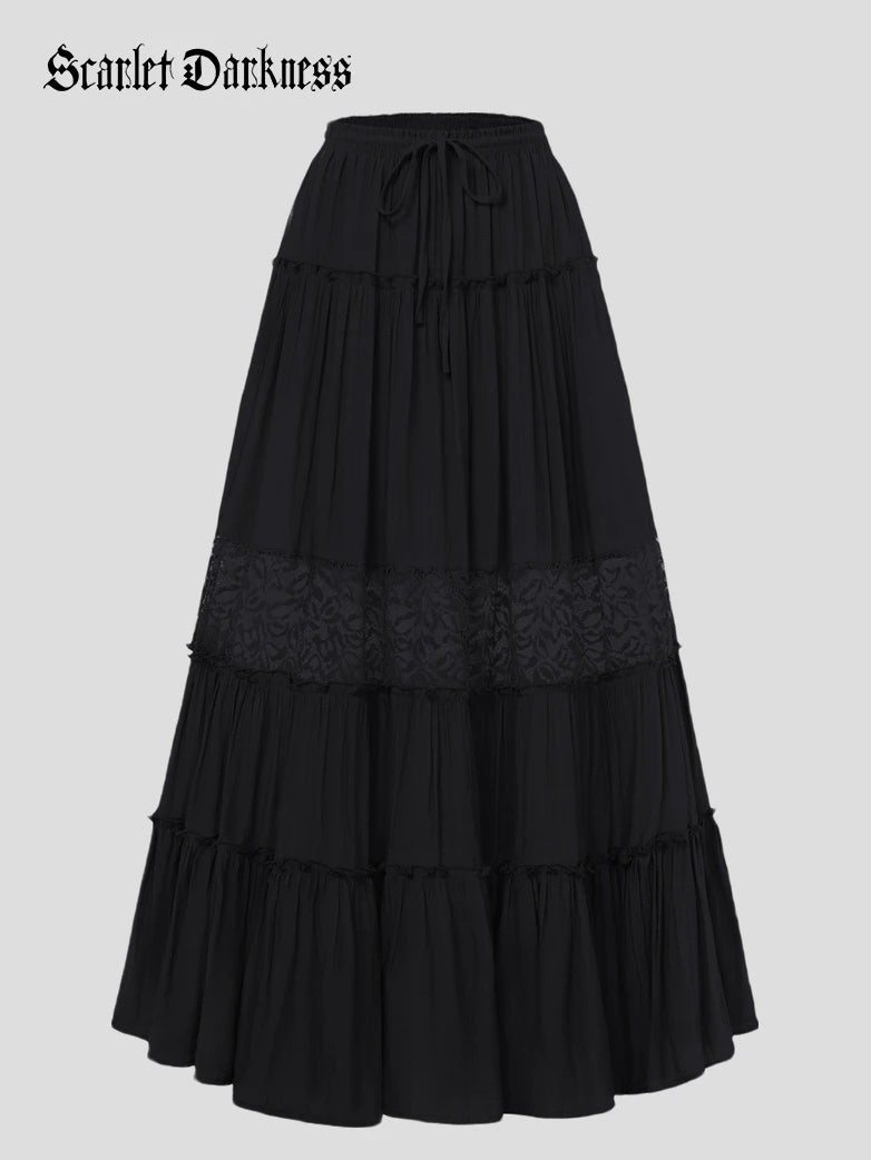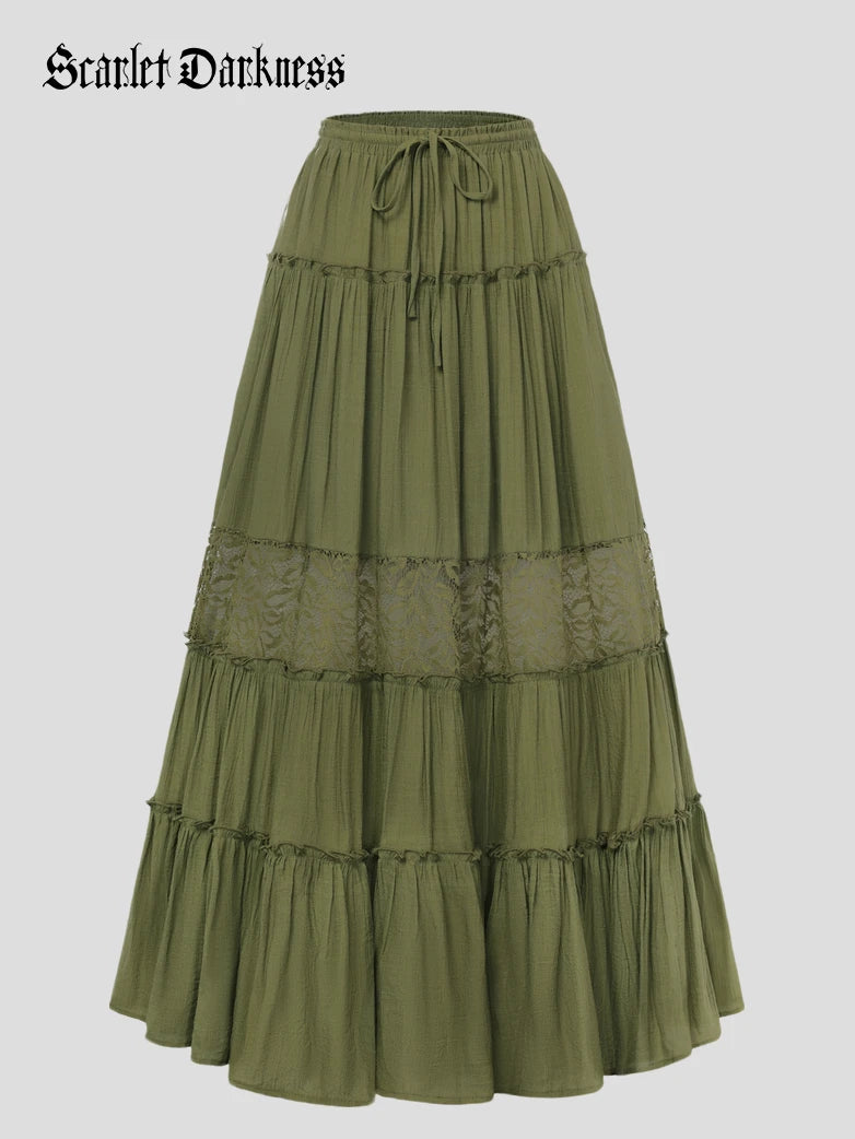 Renaissance Viscose Elastic Waist Swing Pockets Skirt