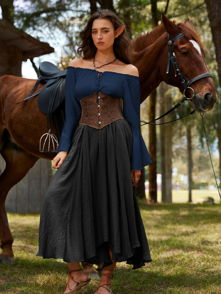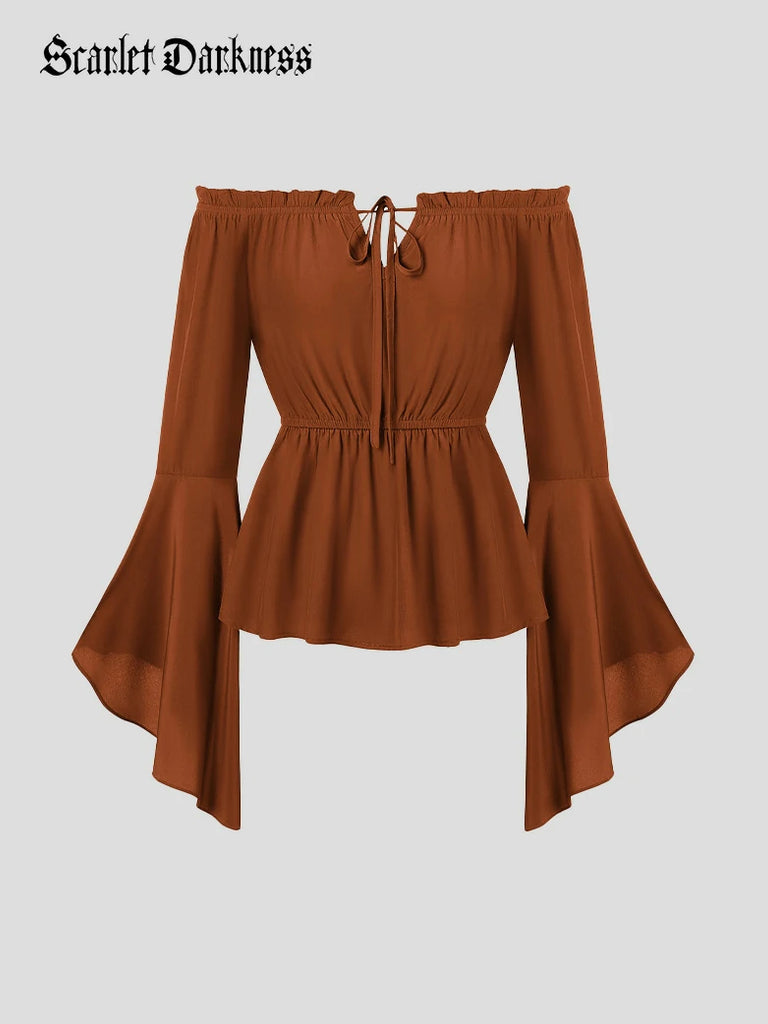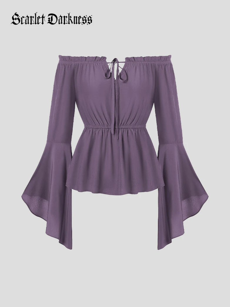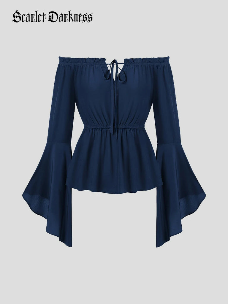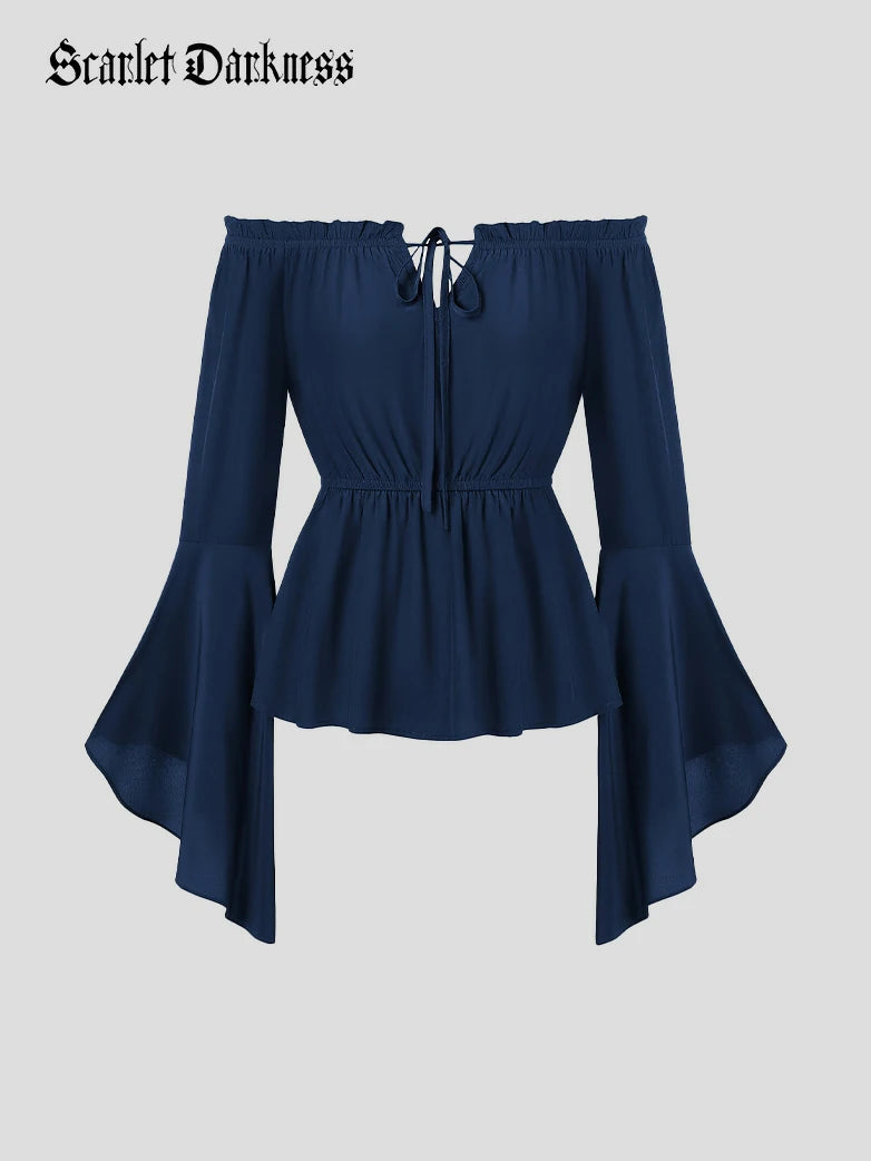 Scarlet Darkness Women Renaissance Elastic Waist Tops Comfy Long Sleeve Off Shoulder Tops
