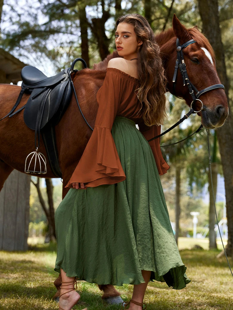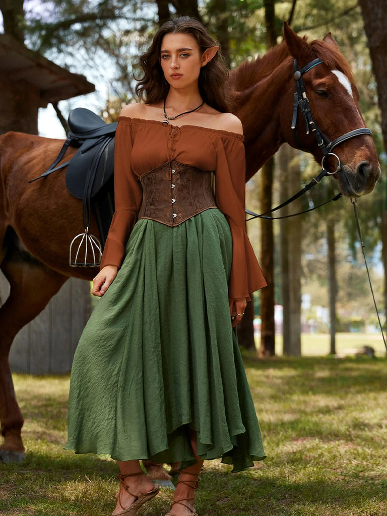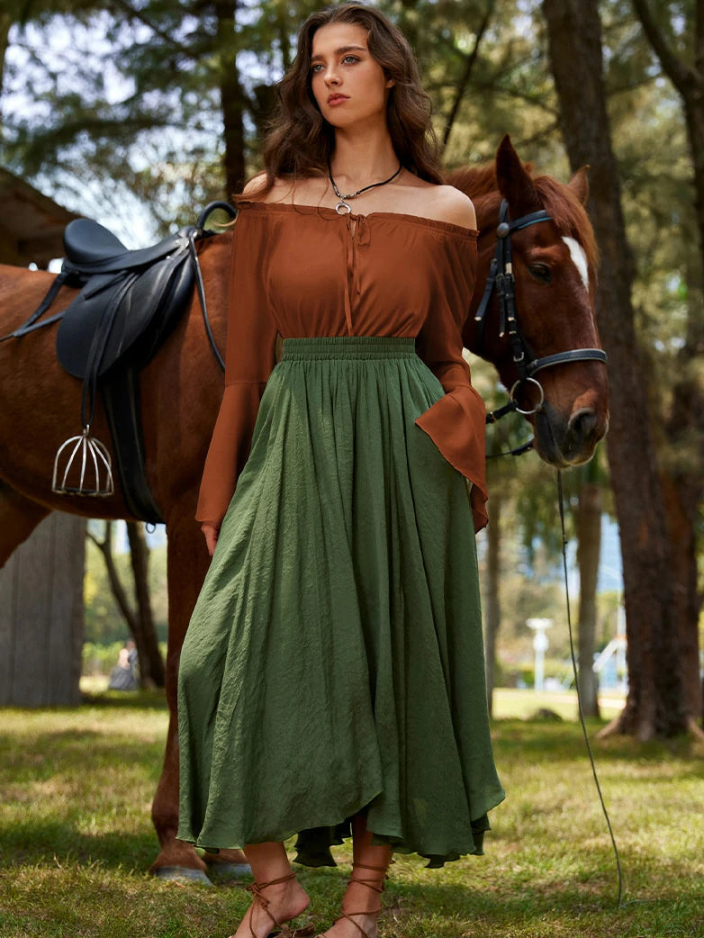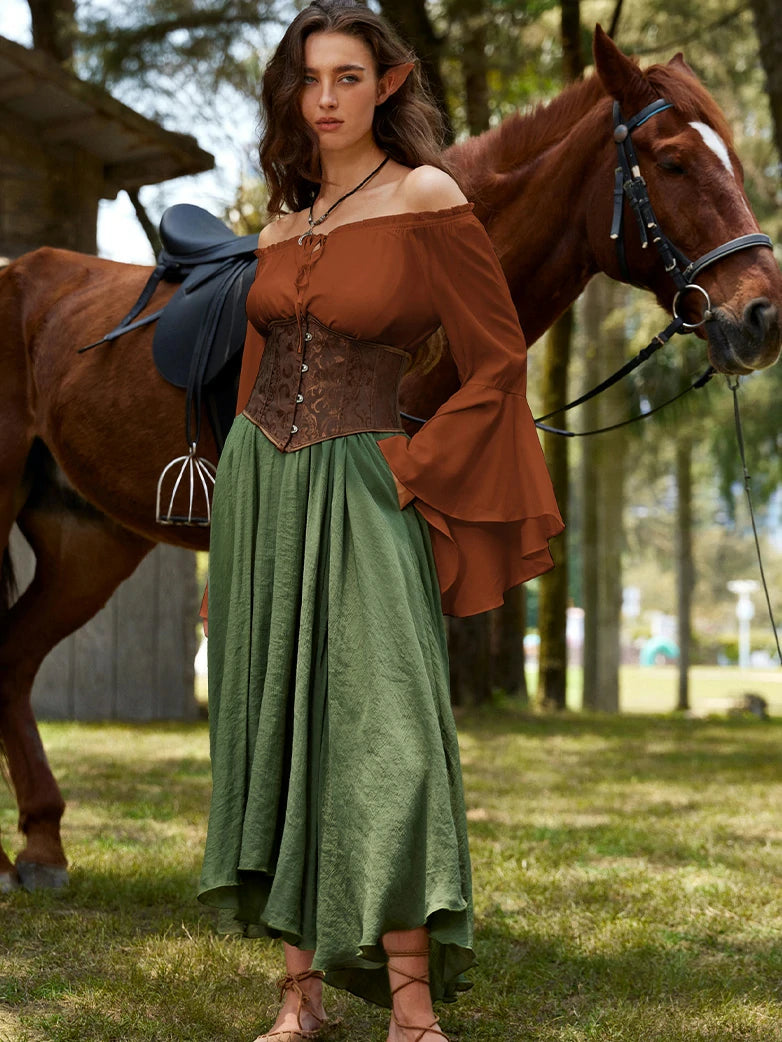 Scarlet Darkness Women Renaissance Elastic Waist Tops Comfy Long Sleeve Off Shoulder Tops