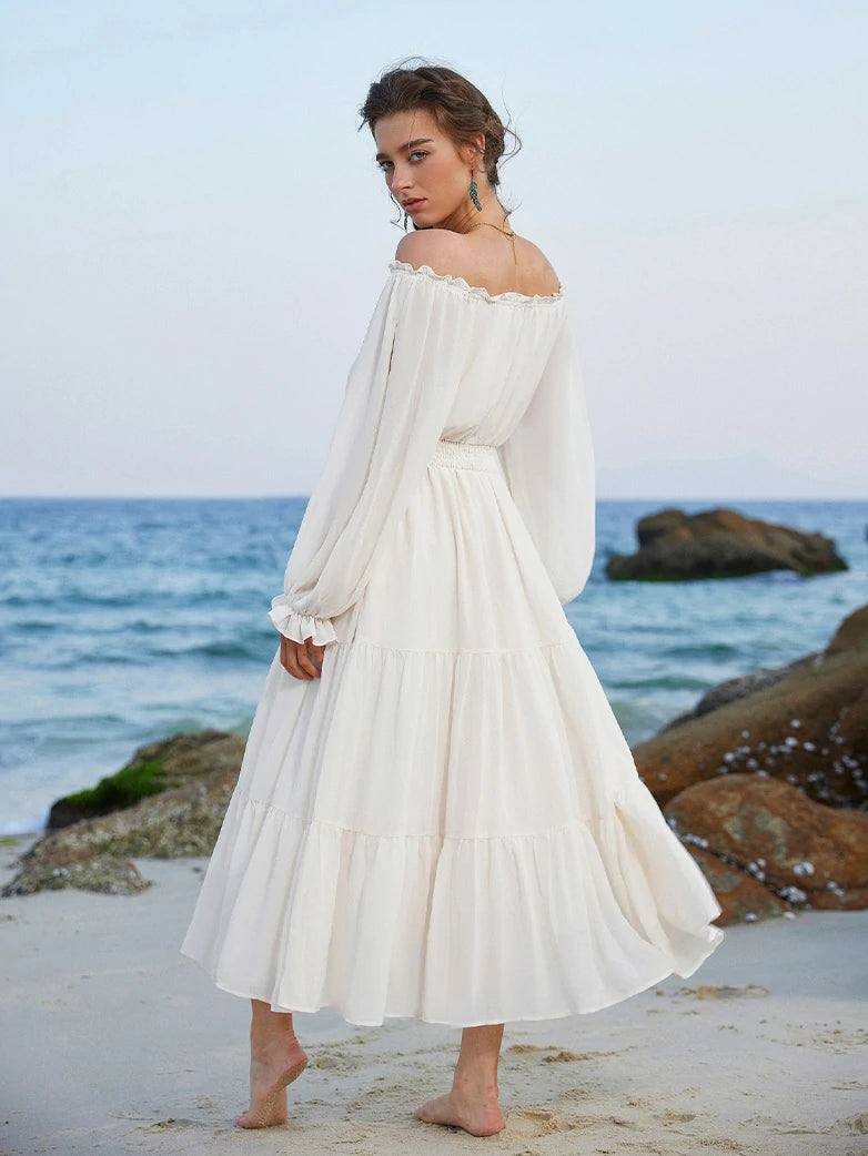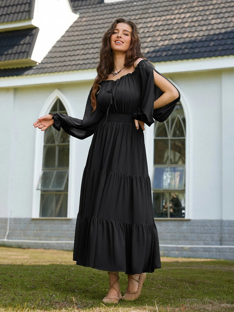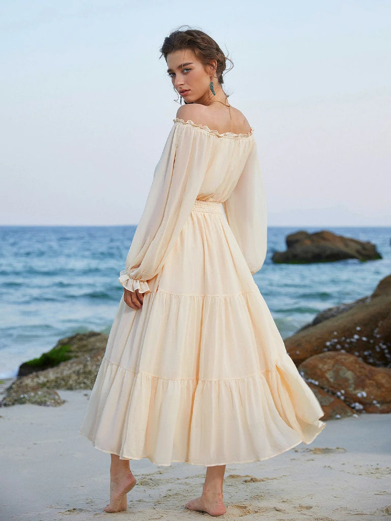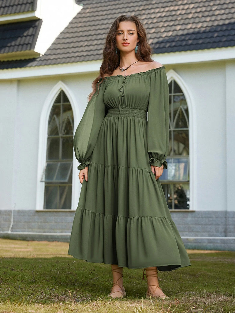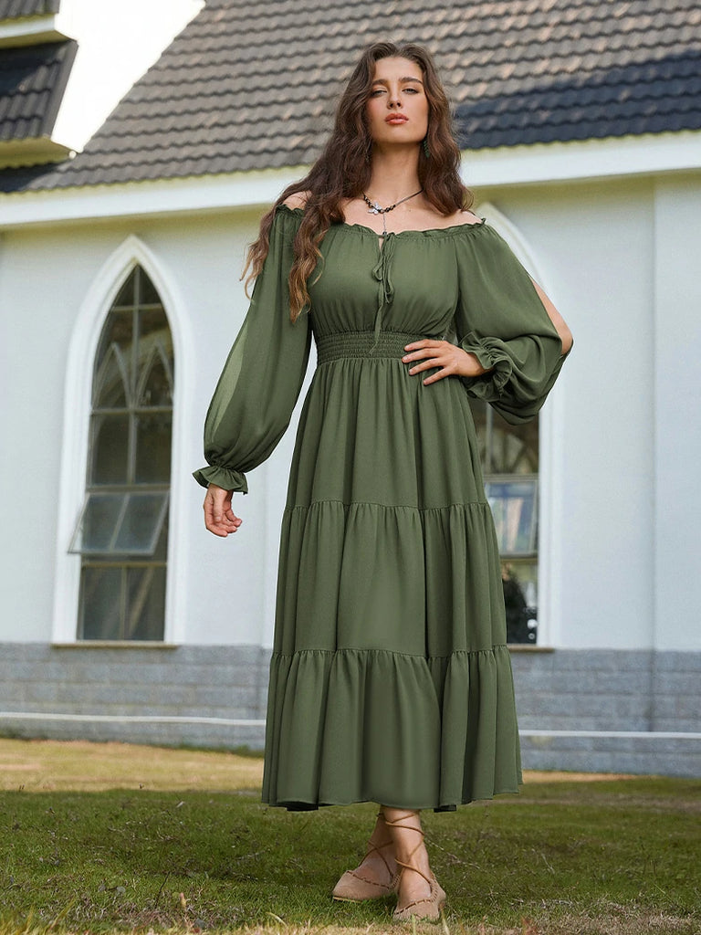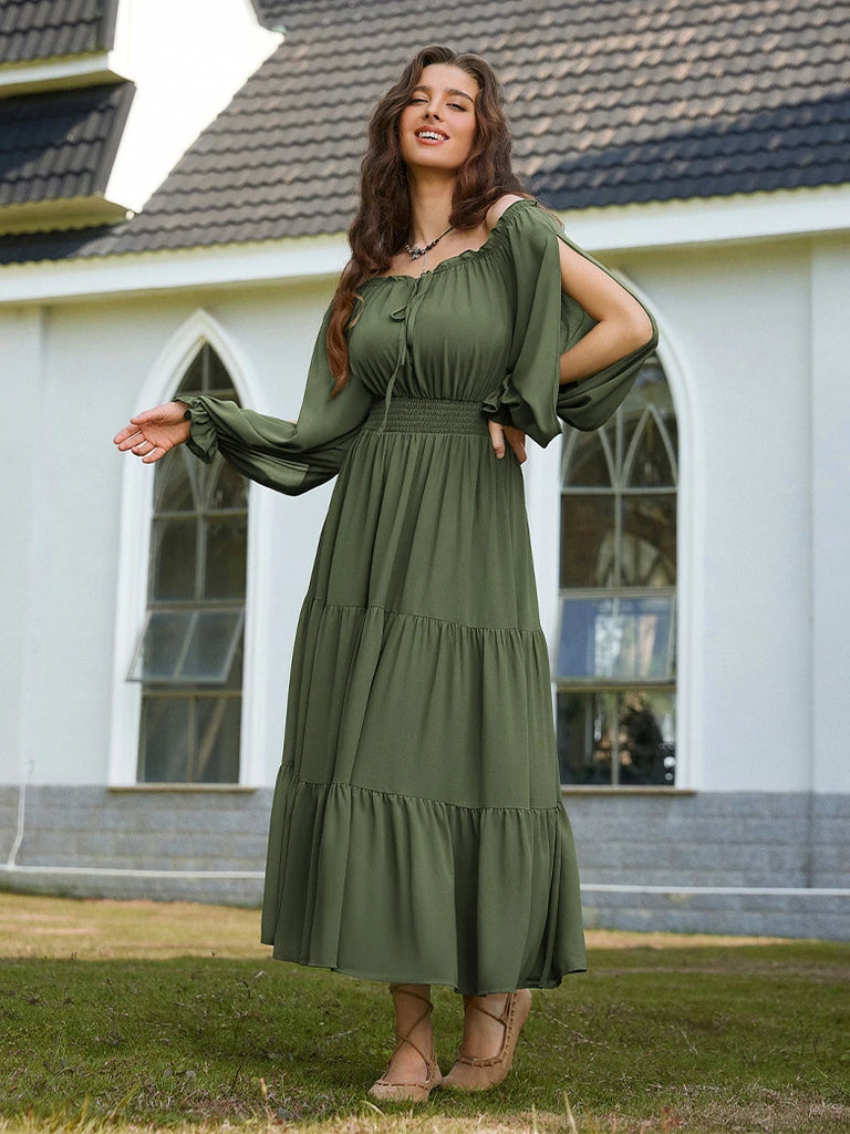 Renaissance Pocket Dress Elastic Waist Chiffon Sleeve Long Sleeve Tiered Maxi Dress