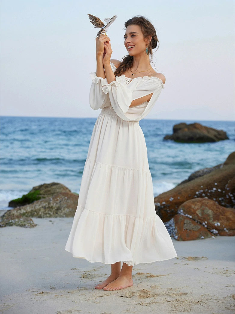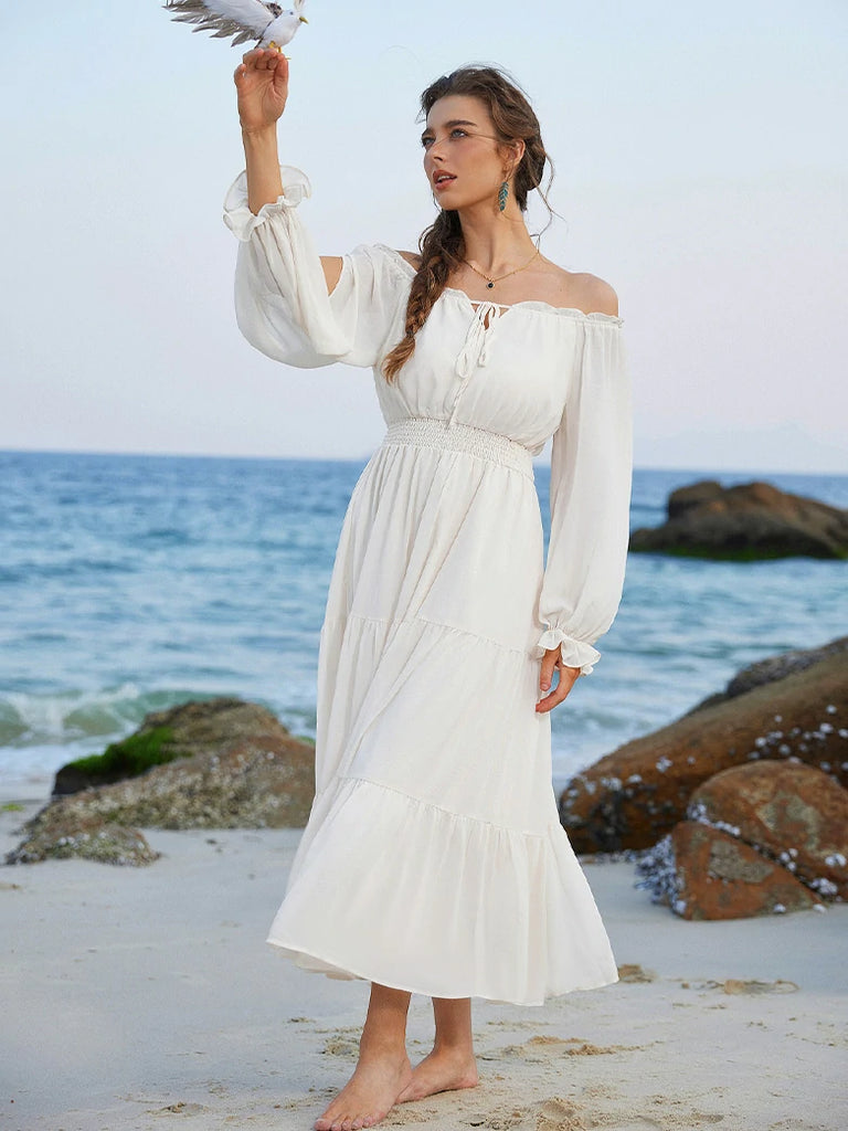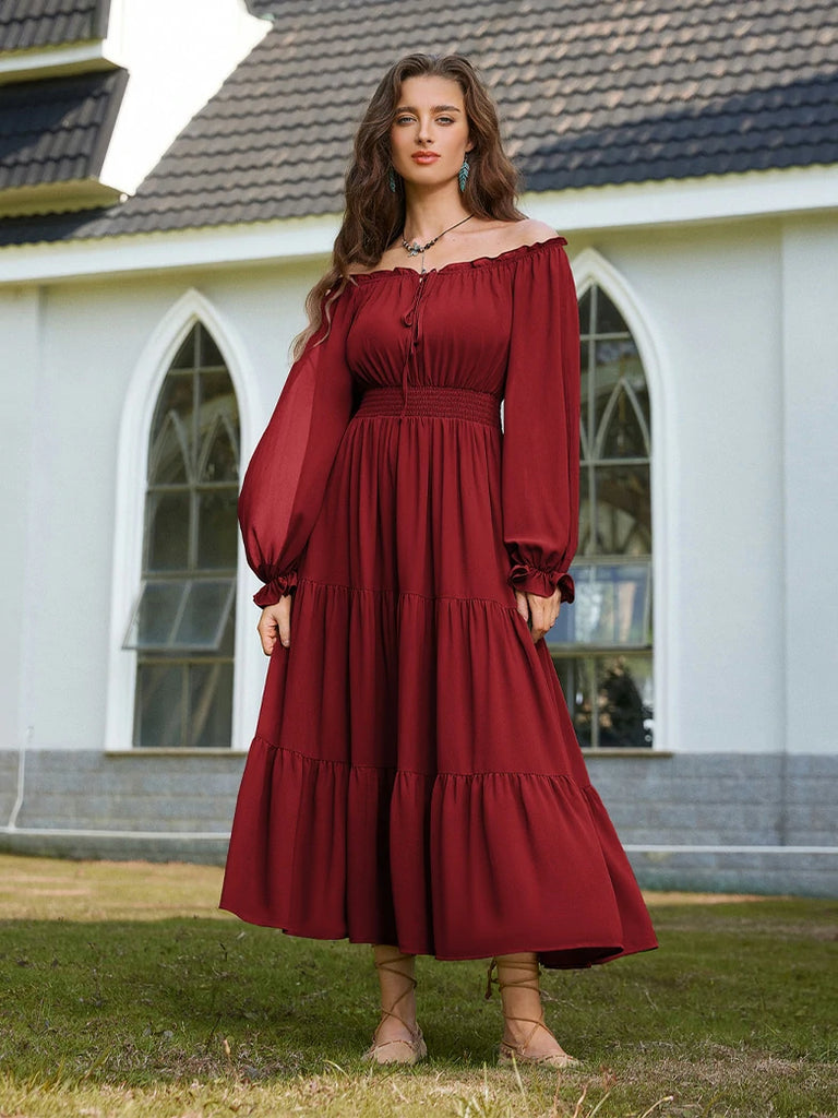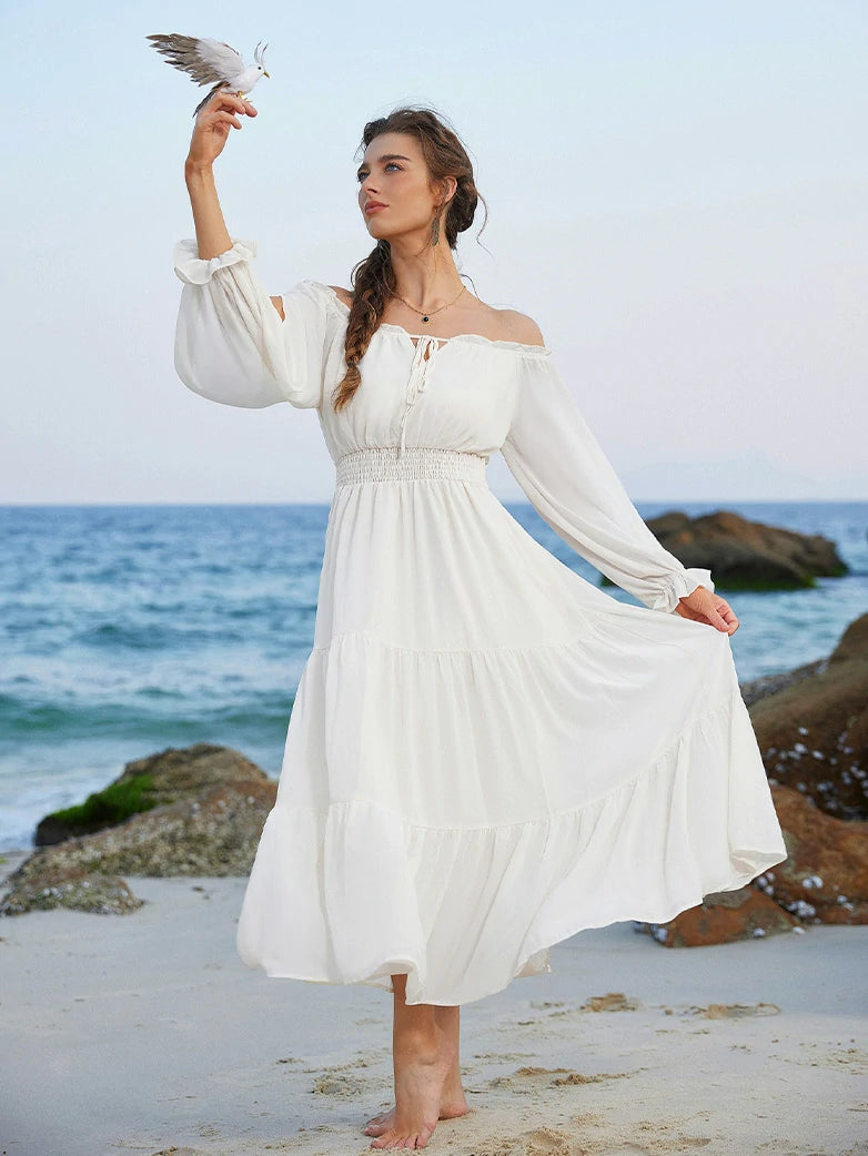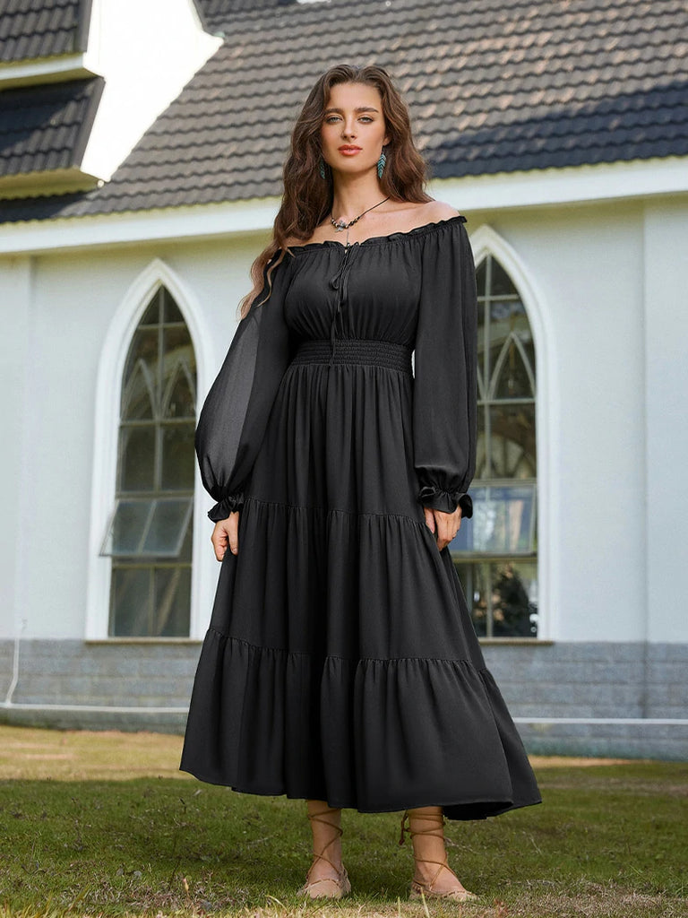 Step into a whimsical world with this Renaissance Pocket Dress! Featuring an elastic waist for a comfy fit, delicate chiffon long sleeves, and a flowing tiered maxi skirt, it’s perfect for twirling through your day. With handy pockets and a playful silhouette, this dress blends vintage charm with modern ease—ideal for making every moment feel like a fairytale.