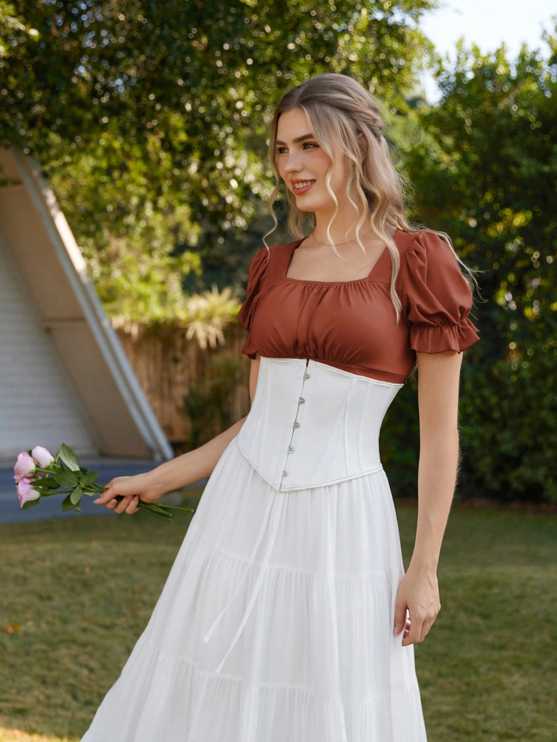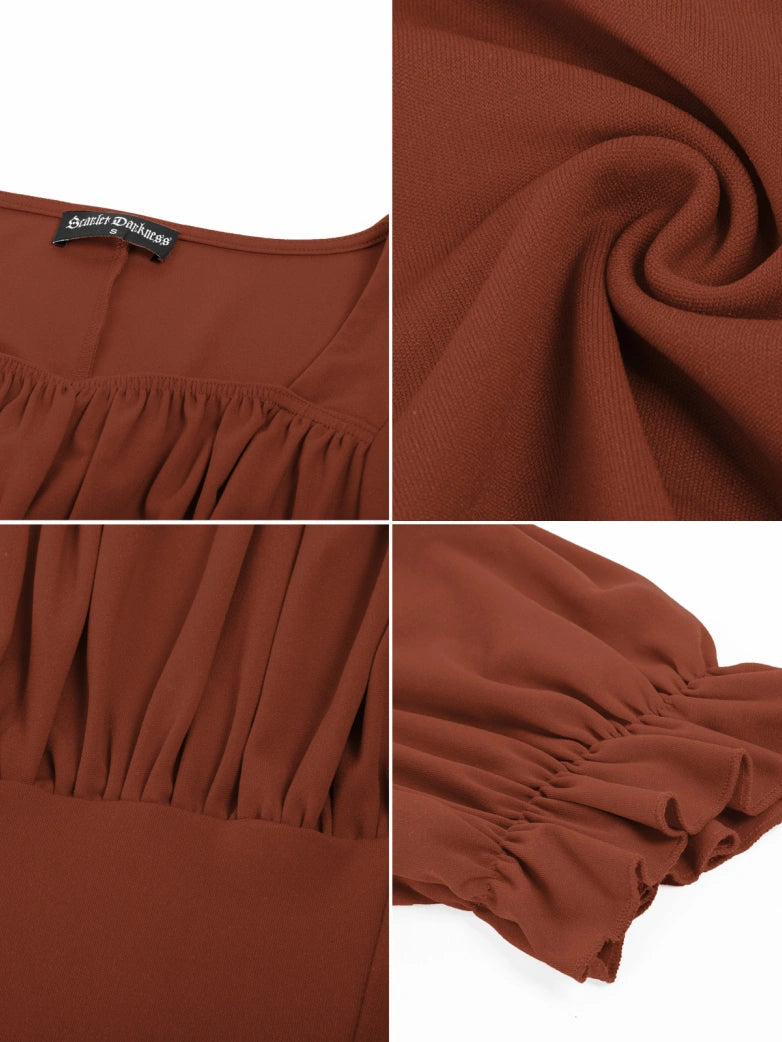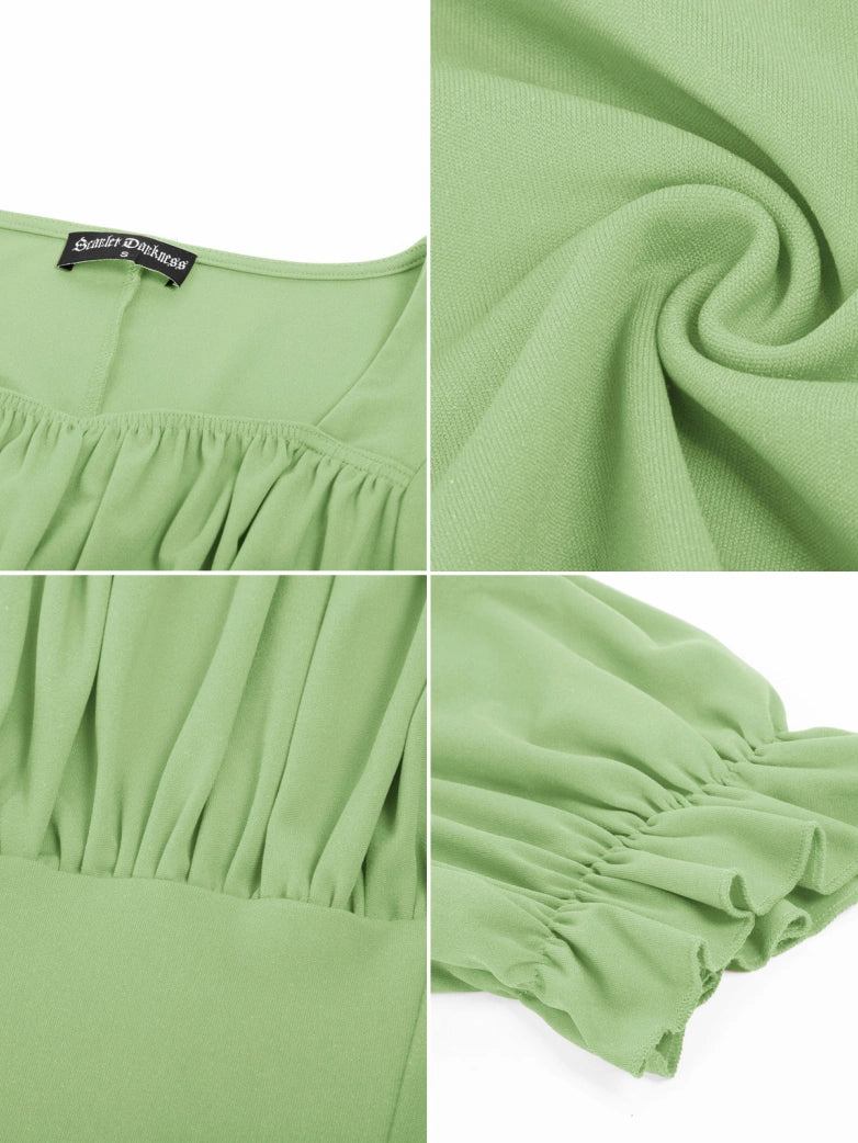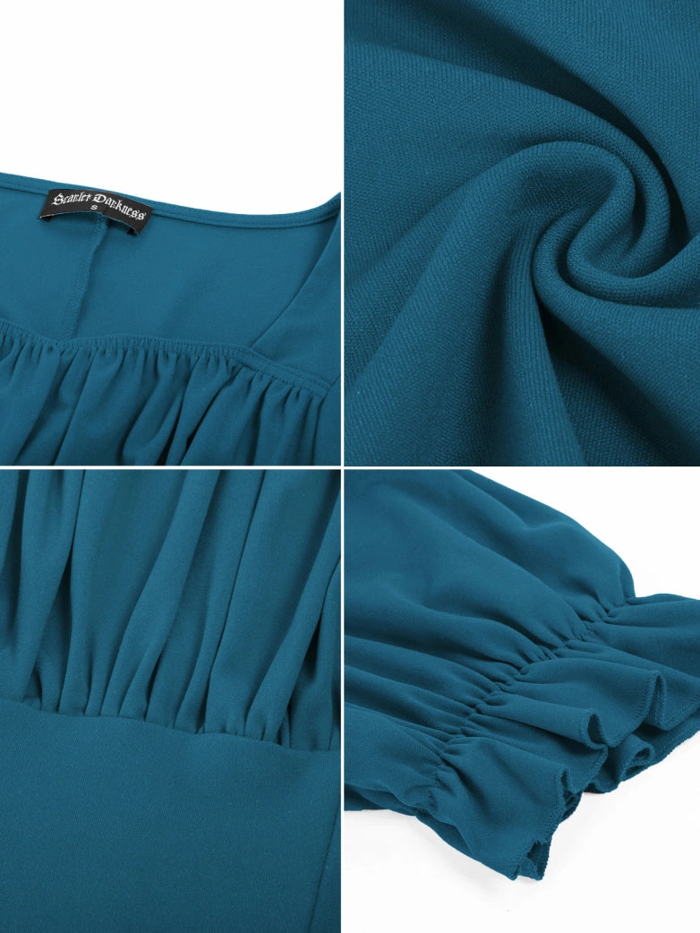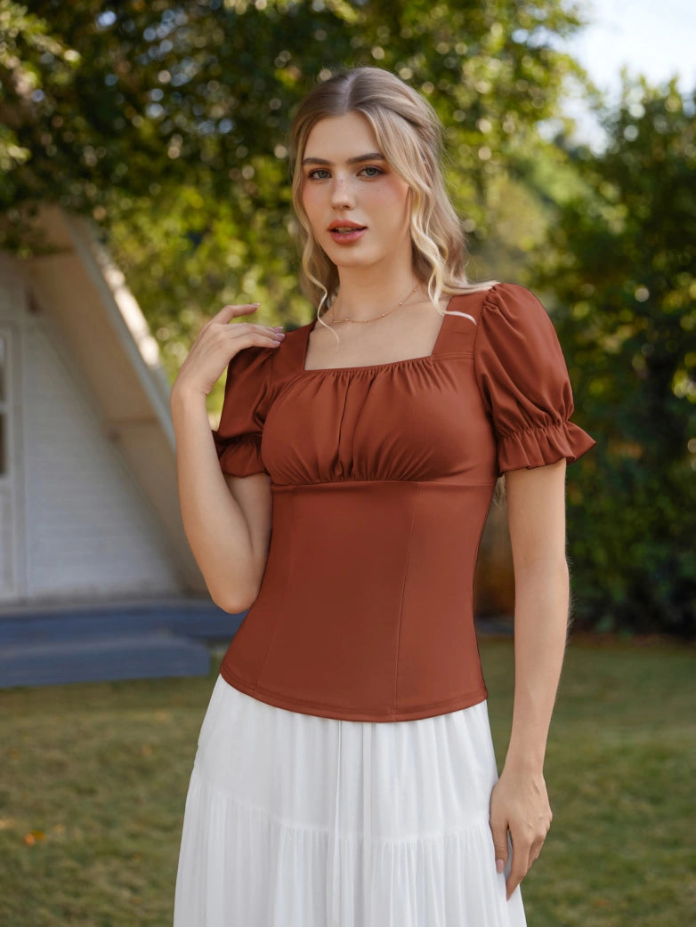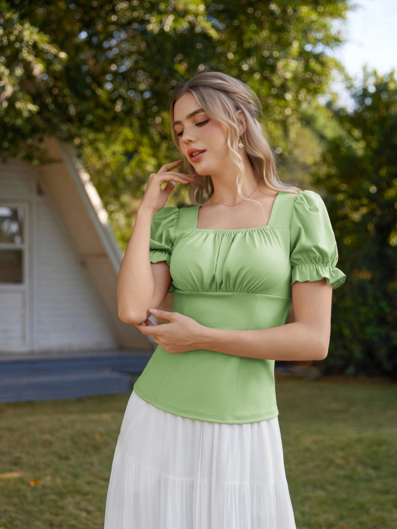 Tops froncés à manches courtes et col carré