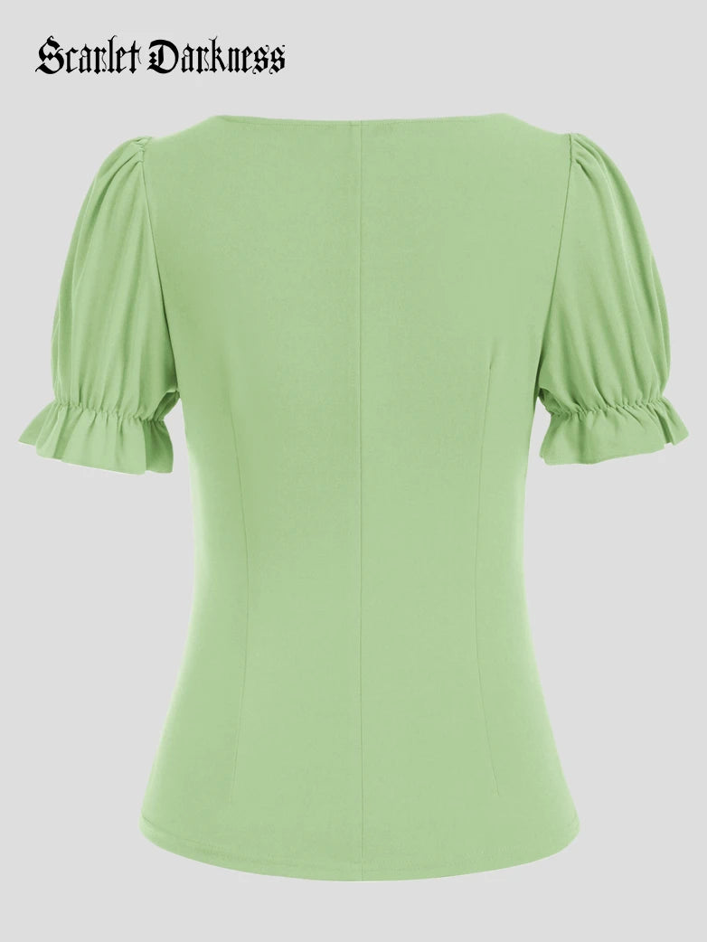 Lotia à volants à manches courtes Renaissance pour femmes Tops Chemises victoriennes vintage