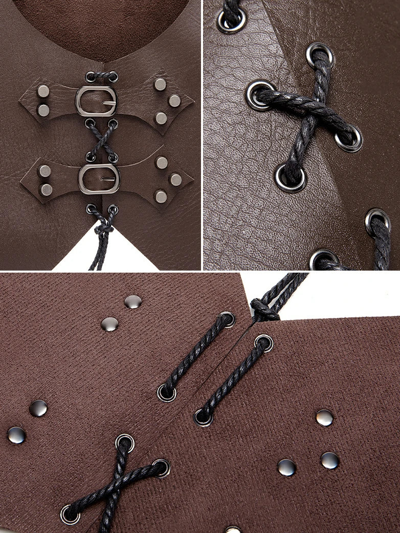 Suit up for epic adventures with this Medieval Knight PU Leather Armor featuring an adjustable backplate and neck brace combo.