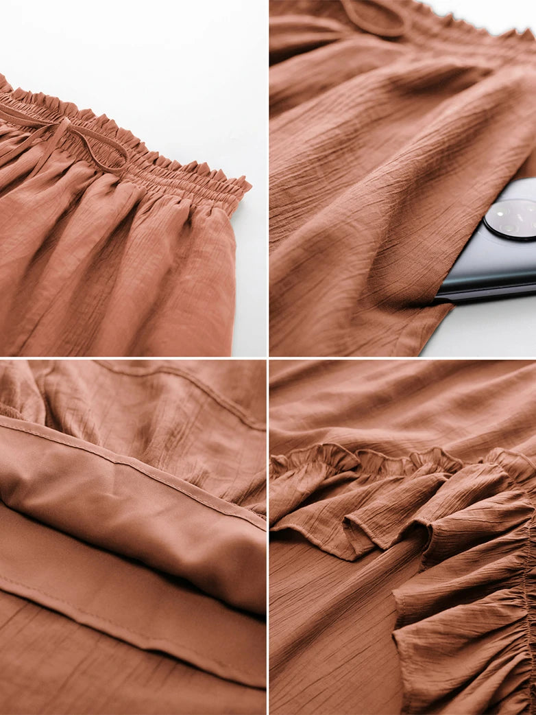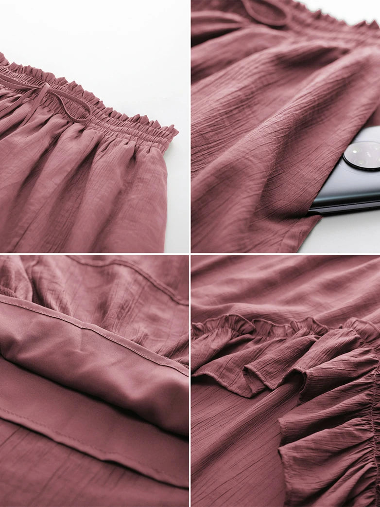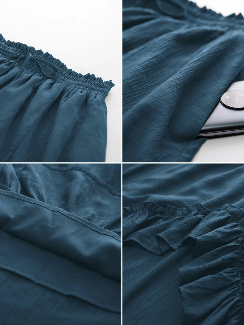 Slub Cotton Renaissance Drawstring Waist Pocket Skirt