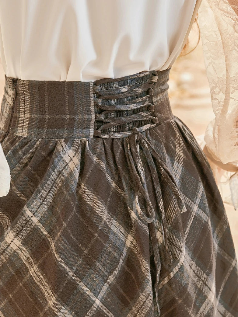 Scarlet Darkness Women Renaissance Maxi Skirt Elastic Plaided Swing Skirt