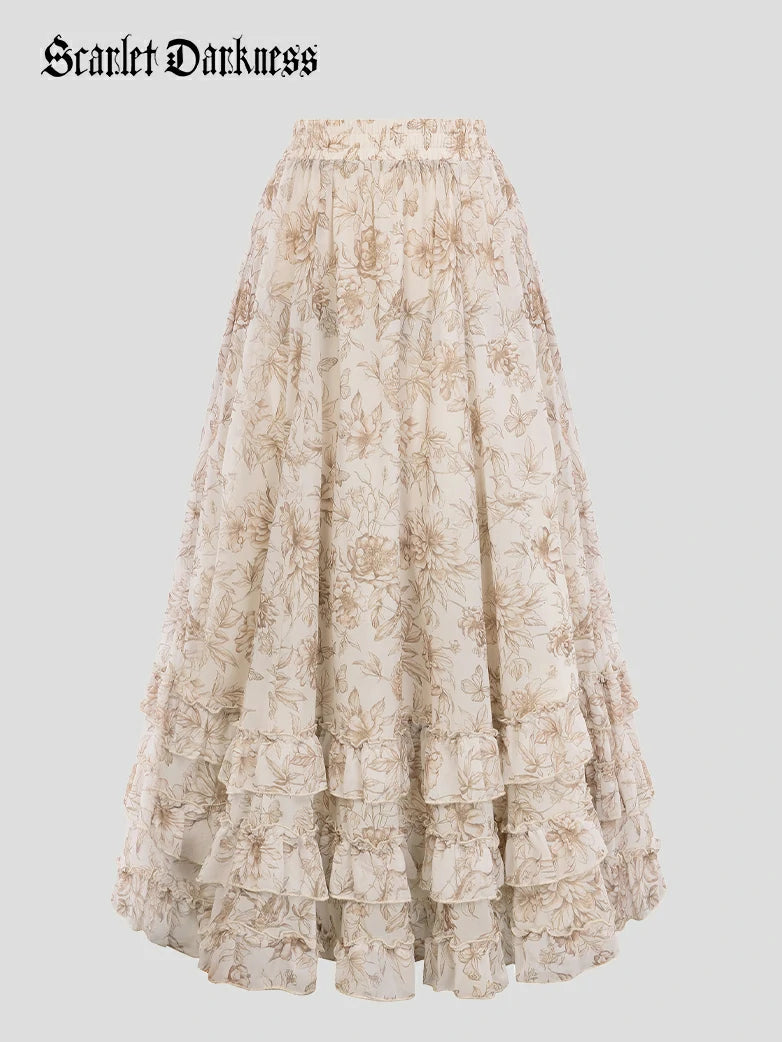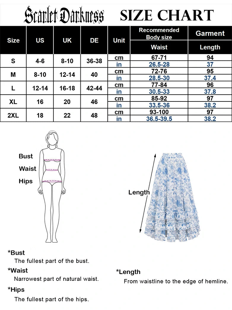 Step back in time with this whimsical Renaissance chiffon maxi skirt that's equal parts elegance and fun! The lightweight chiffon fabric drapes gracefully, creating a mesmerizing swing effect as you move.