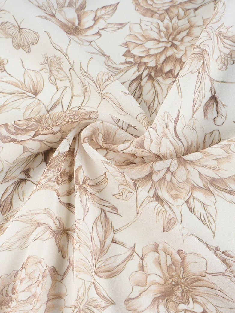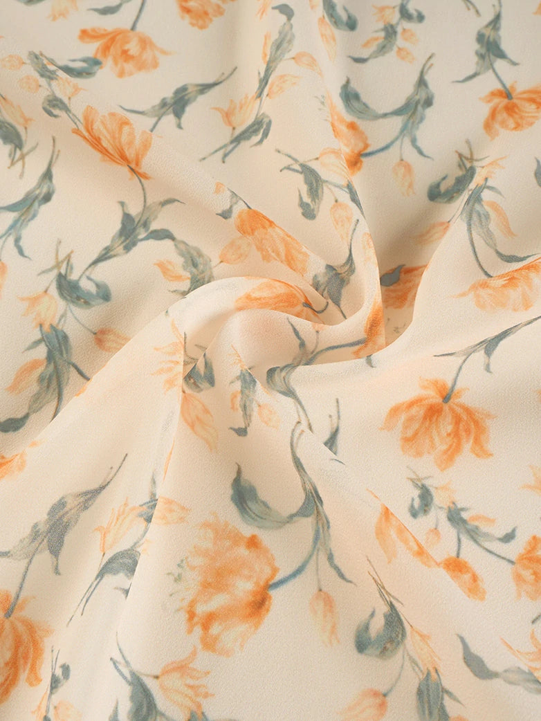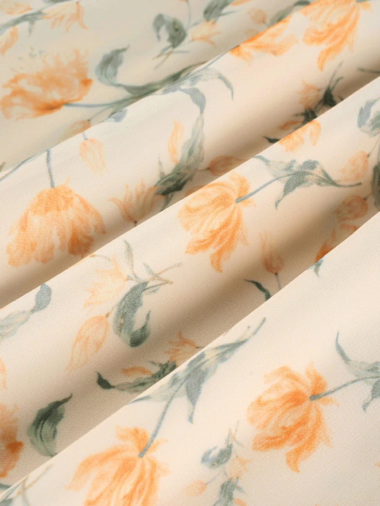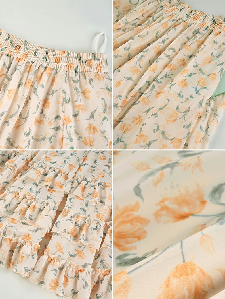 1. Pearl-embellished chiffon floral print midi skirt; flowy and flattering, easy to match and suits all body types.