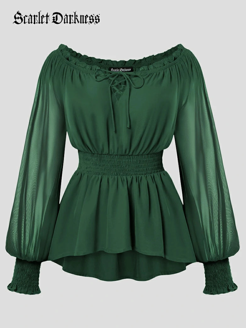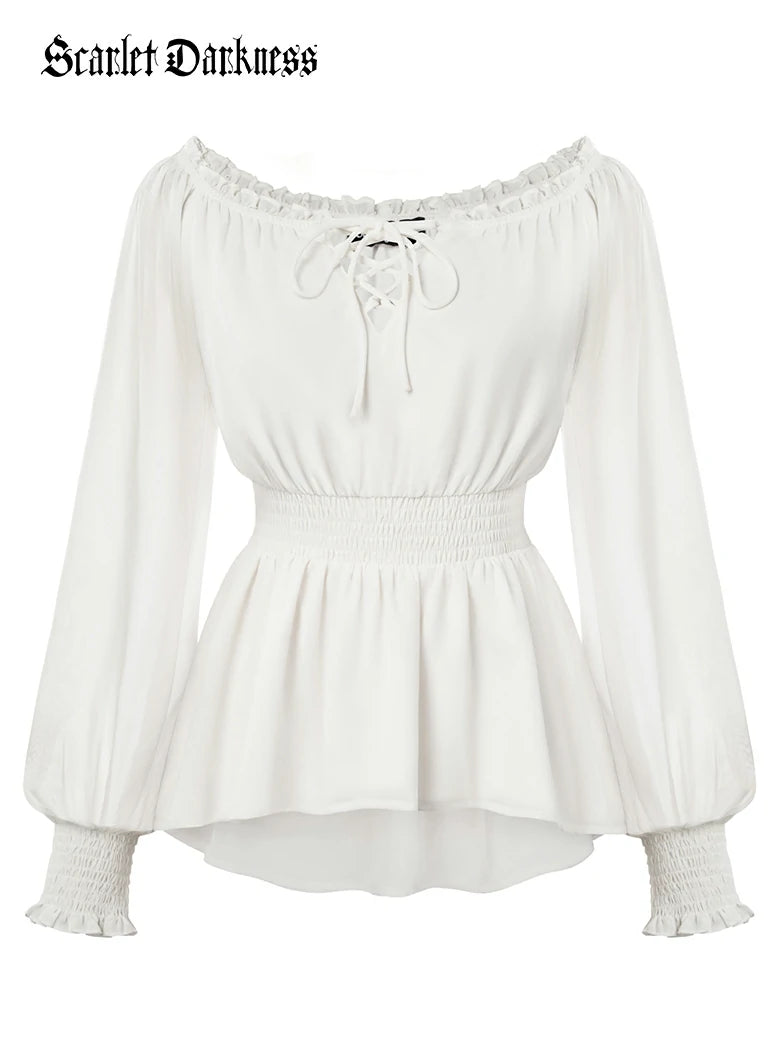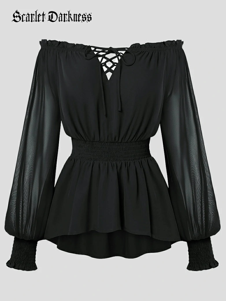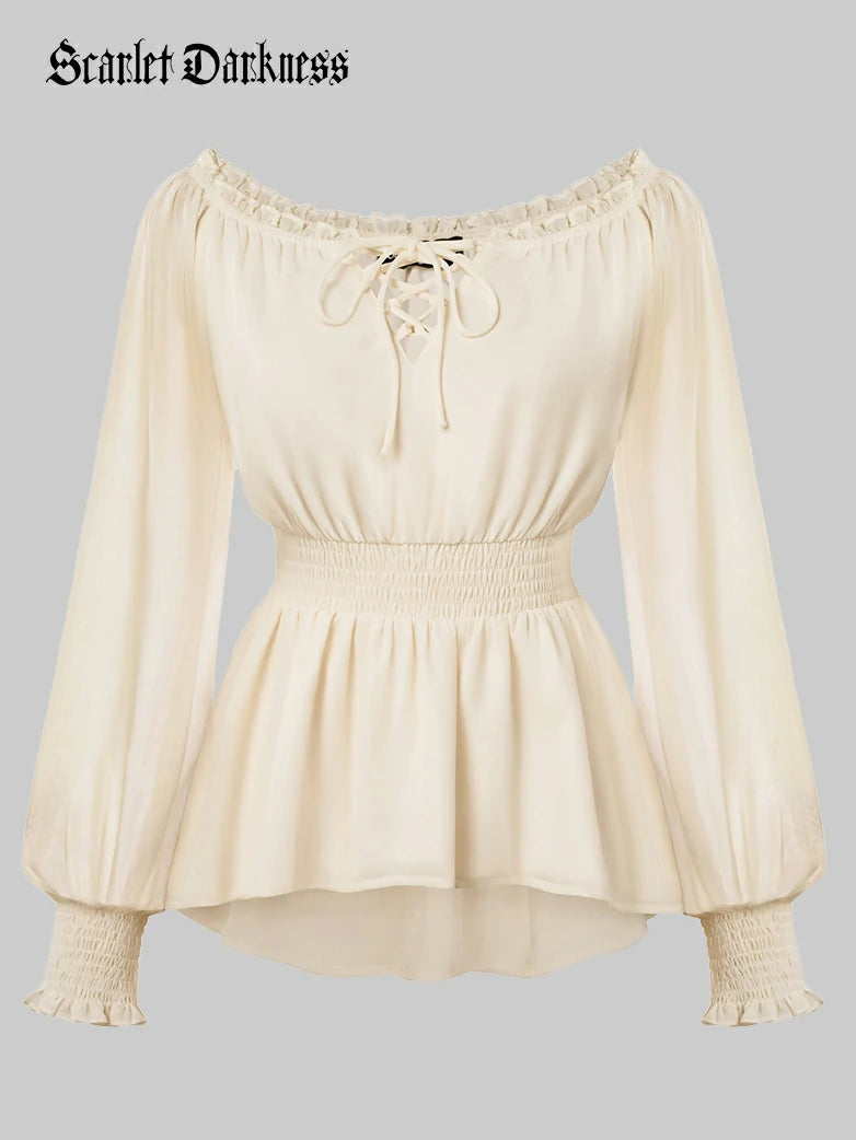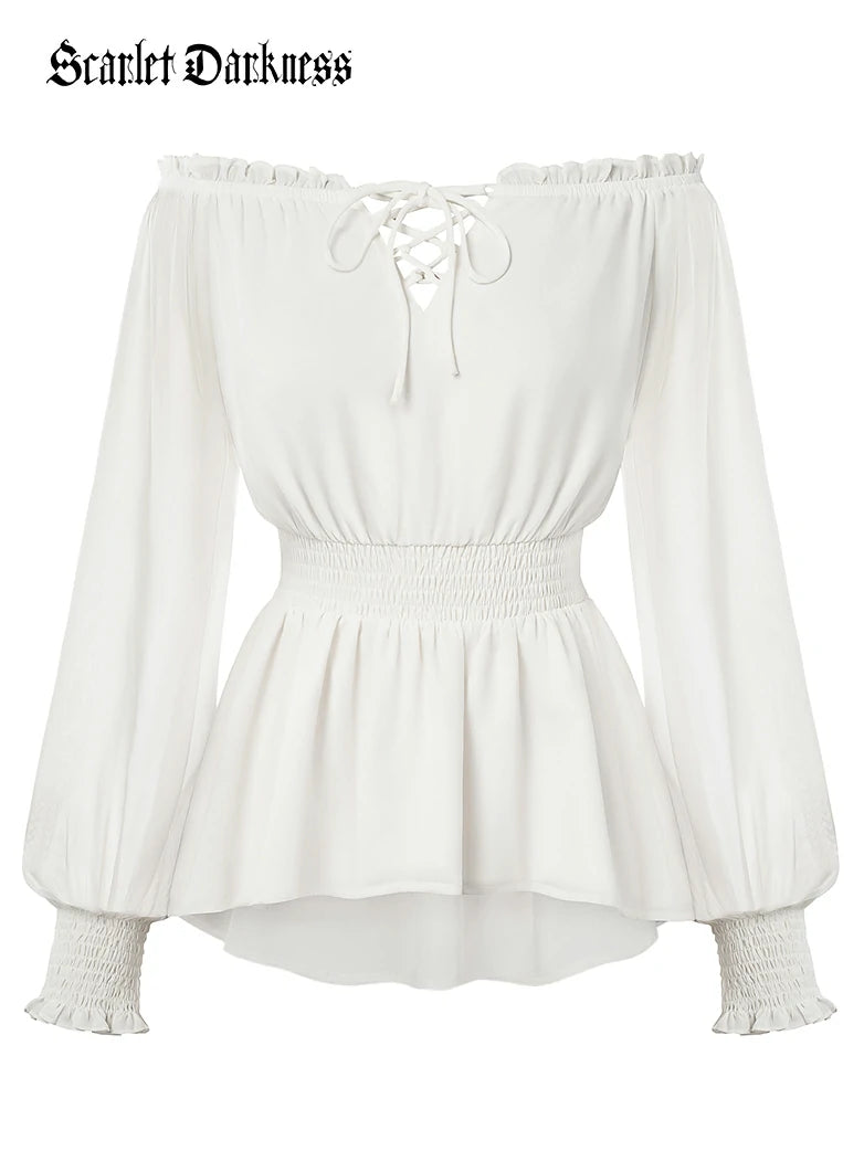 Scarlet Darkness Women Renaissance Elastic Waist Chiffon Tops Long Sleeve Off Shoulder Blouse Tops