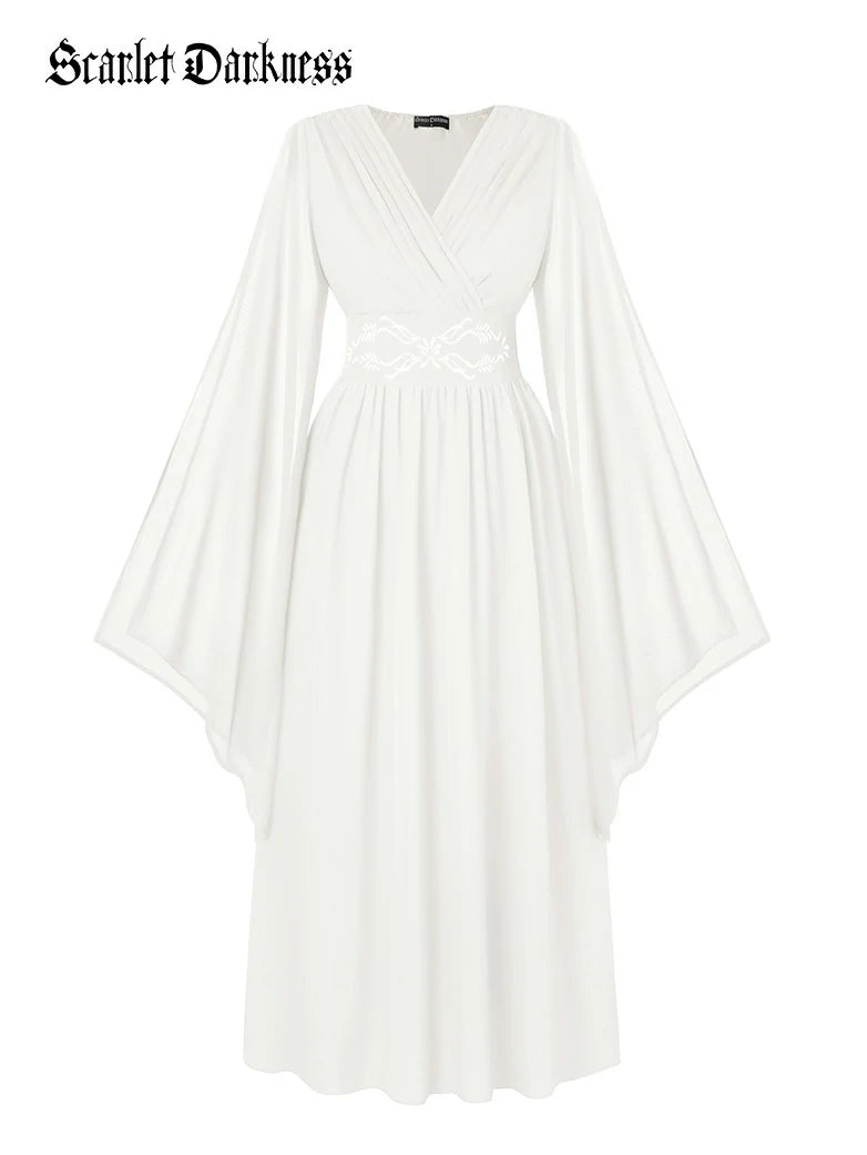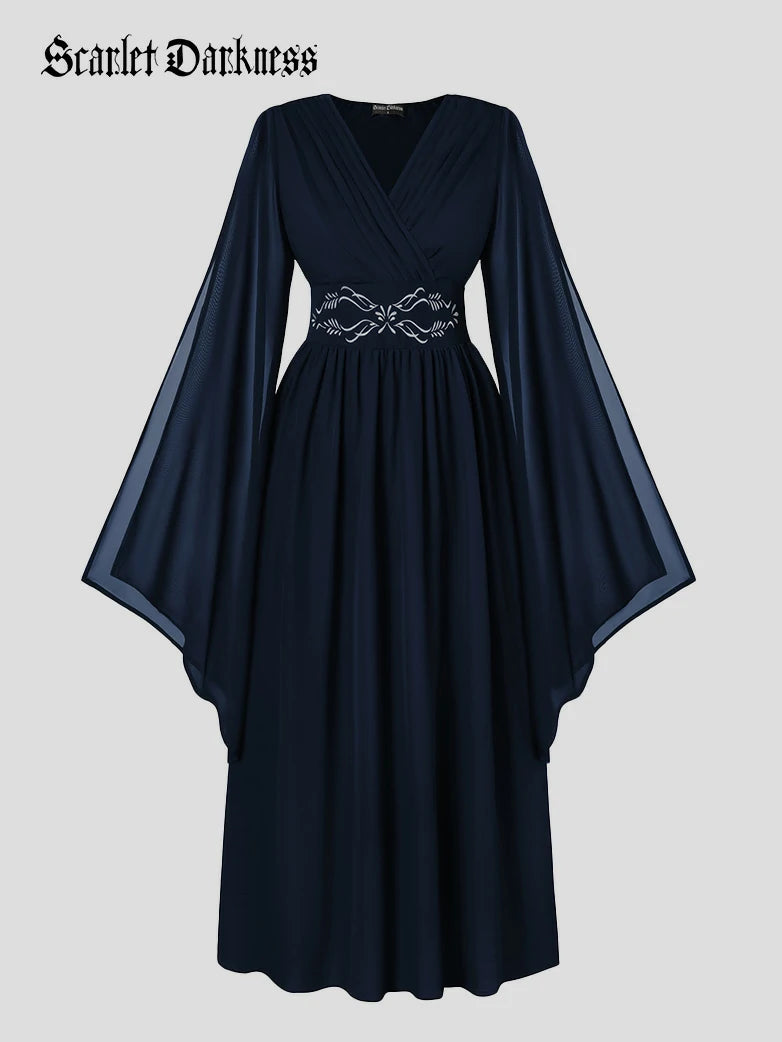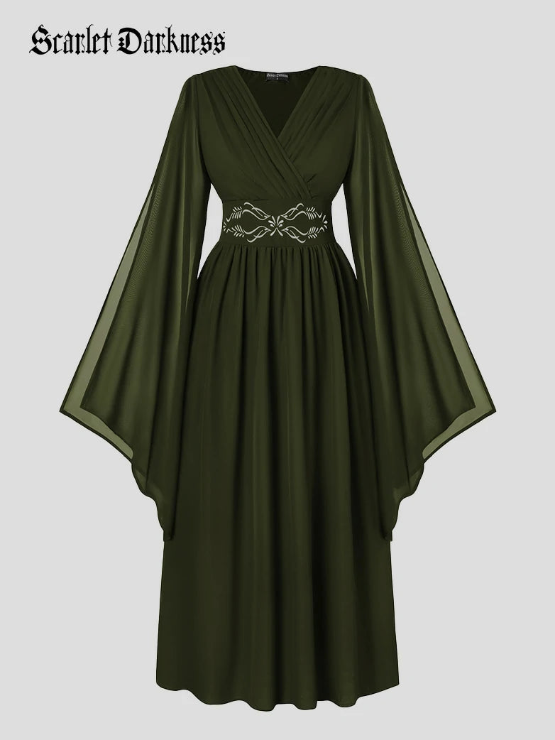 Scarlet Darkness Women Renaissance Renfaire Fantasy Embroidered Chiffon Pockets Dress