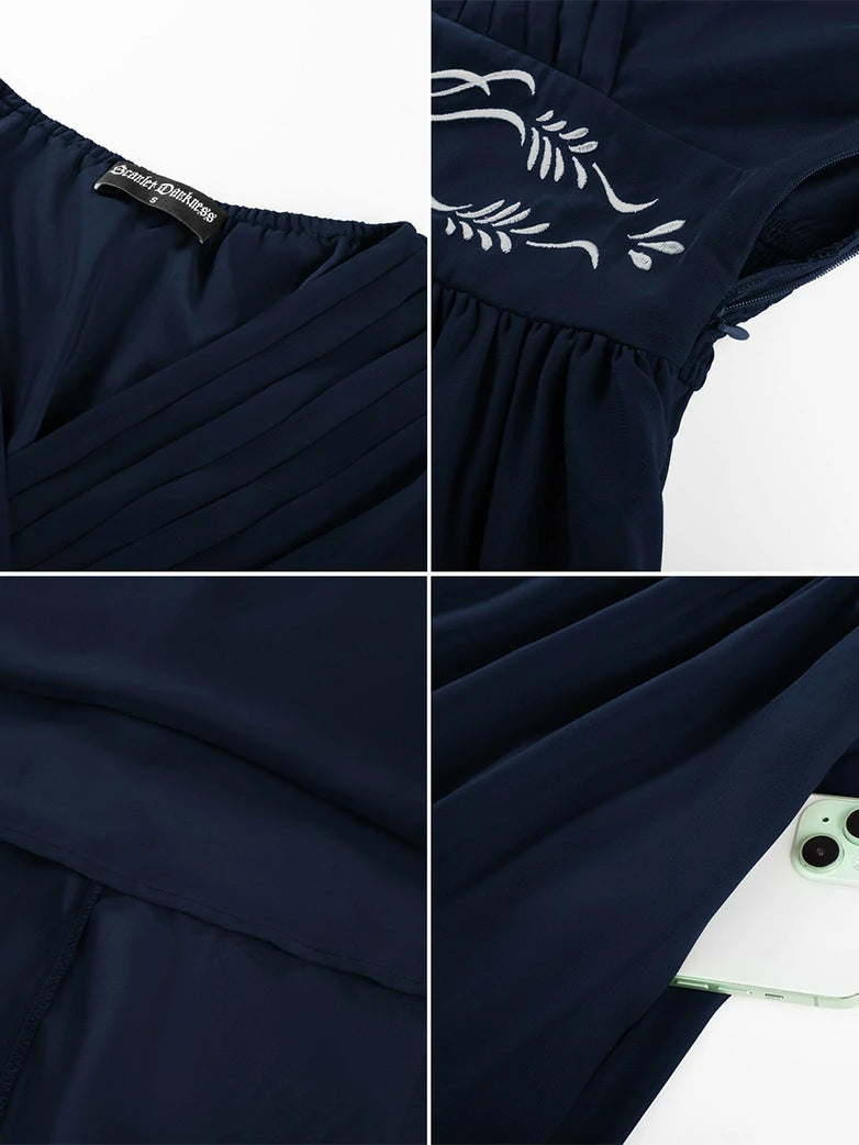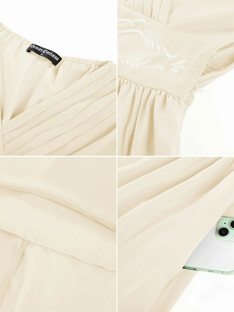Renfaire Fantasy Embroidered Chiffon Pockets Dress